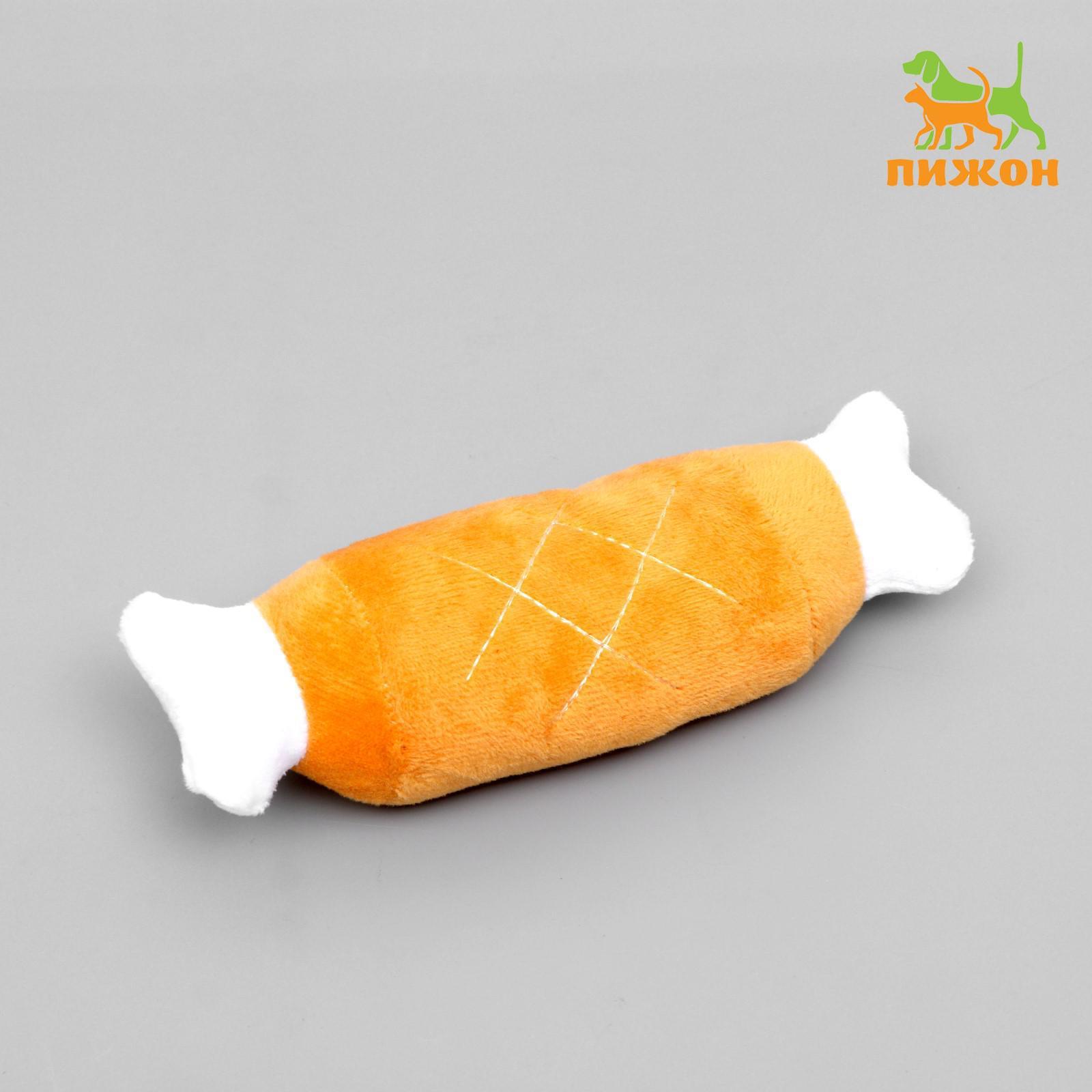 Игрушка для собак "Мягкая косточка" с пищалкой, 19 см, оранжевая