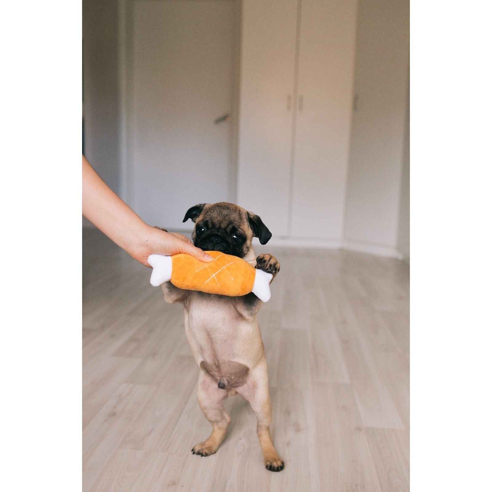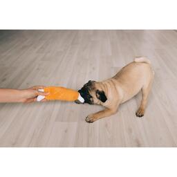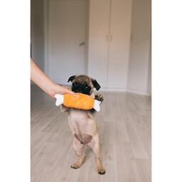 Мягкая игрушка для собак изготовлена из высококачественного текстильного материала с набивкой. Игрушка подойдет для активных игр с питомцем. Неабразивный, нетоксичный материал не ранит зубы и дёсны. Игрушка оснащена пищалкой для привлечения внимания.