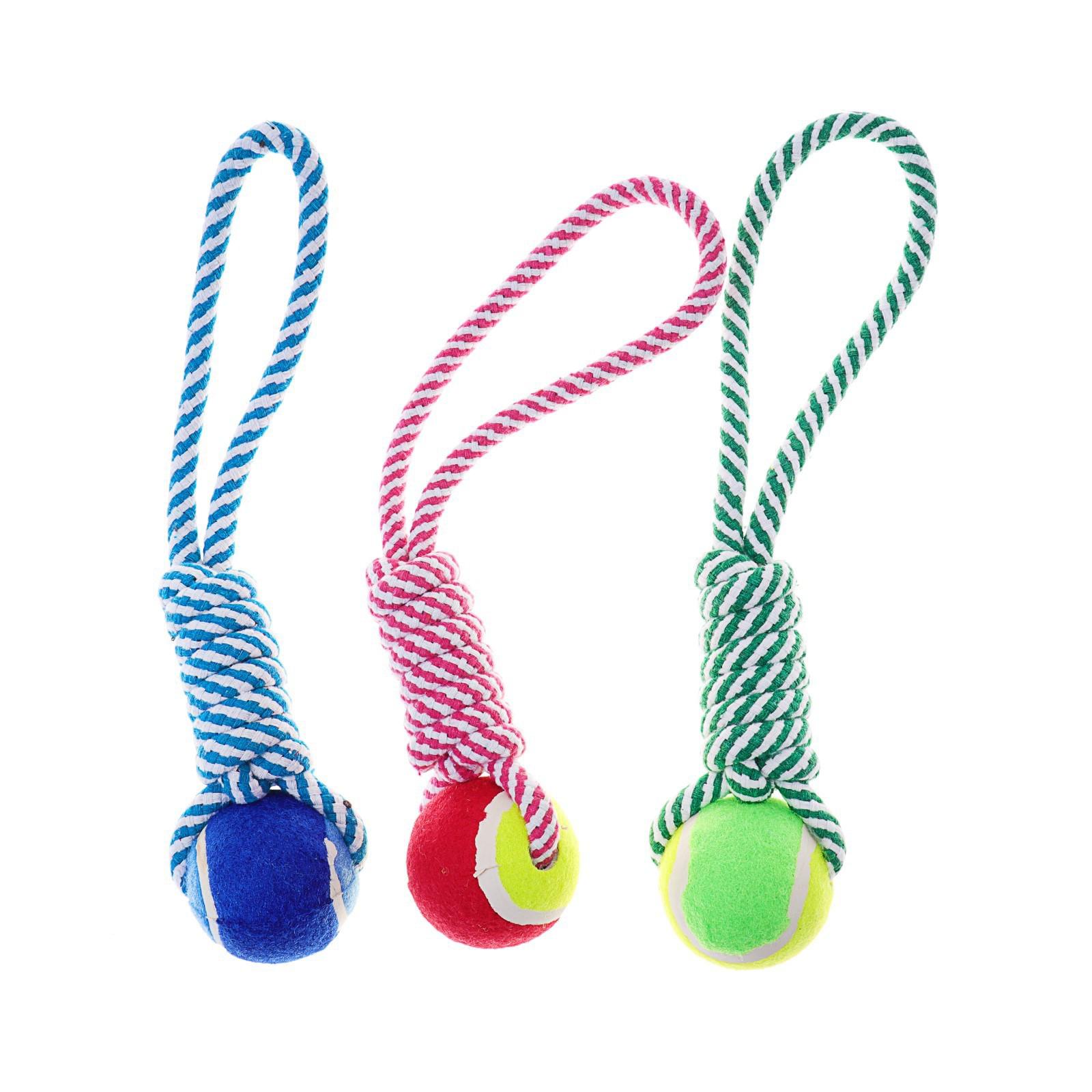 Игрушка канатная плетёная с мячом, до 130 г, до 33 см, микс цветов