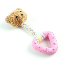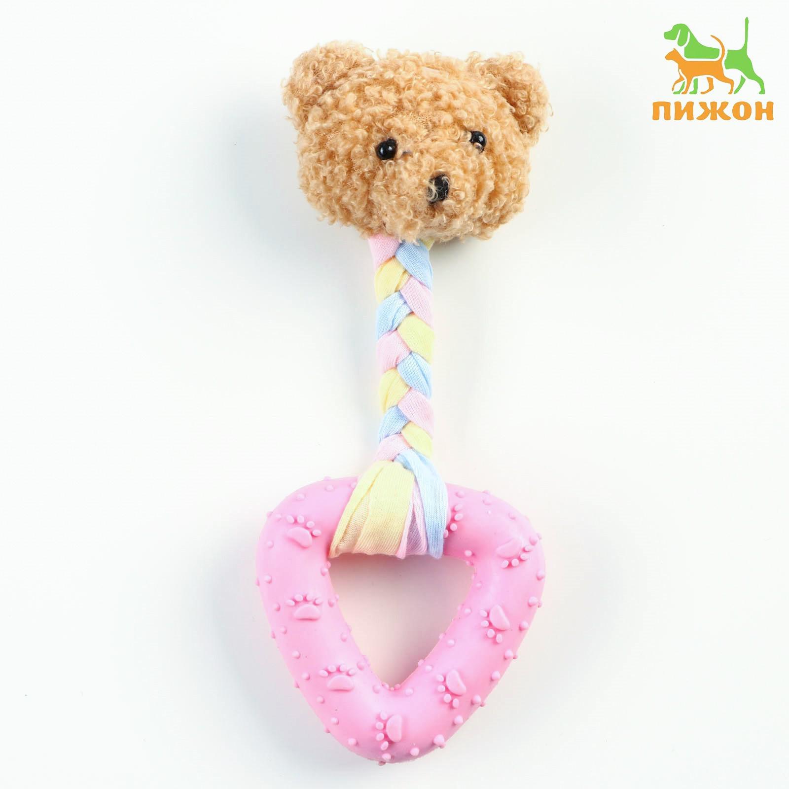 Игрушка мягкая для собак "Медведь" с погремушкой + TPR треугольник, 15 см