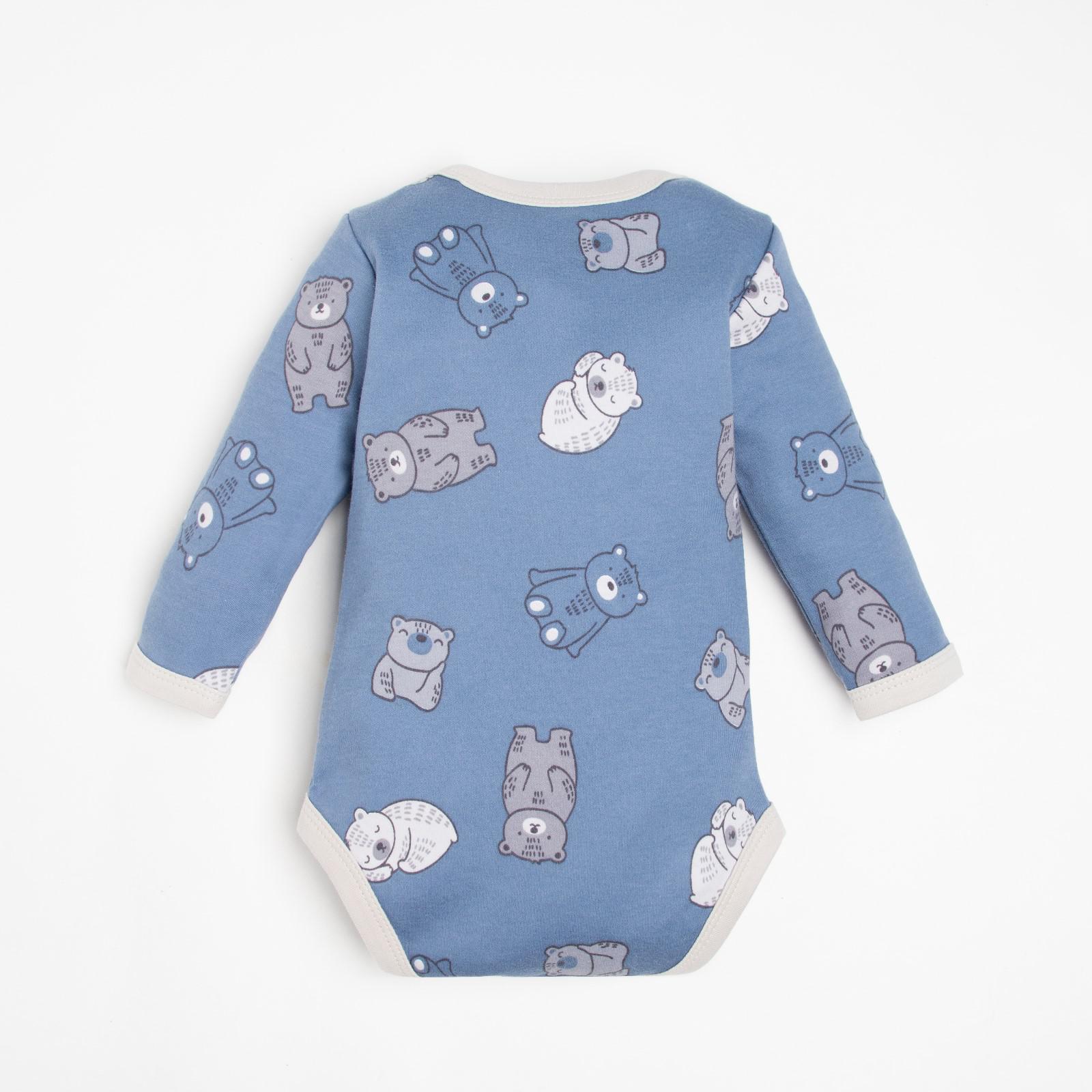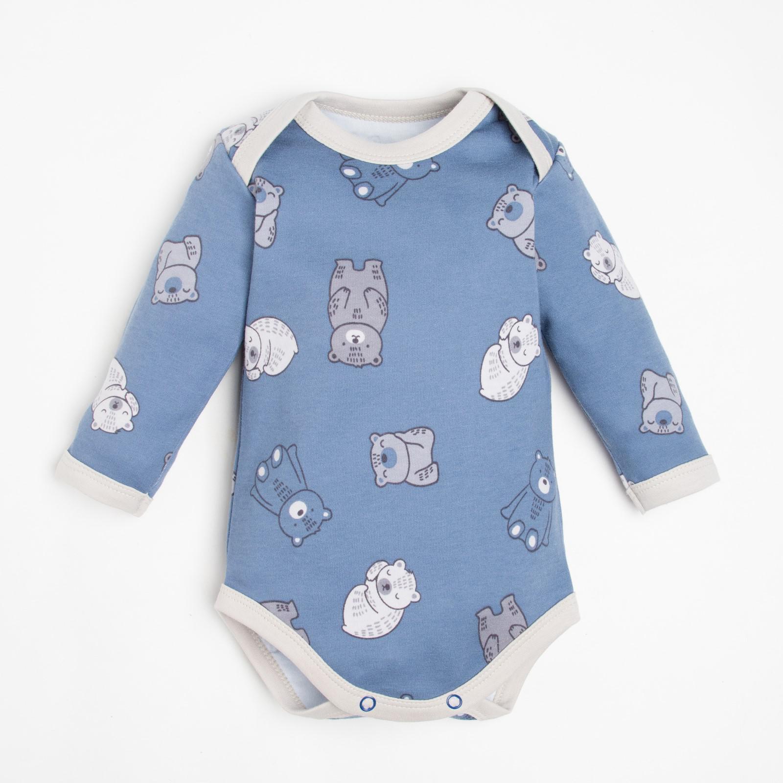 Боди в набивку с длинным рукавом Крошка Я «Мишка», рост 62-68 см, цвет синий