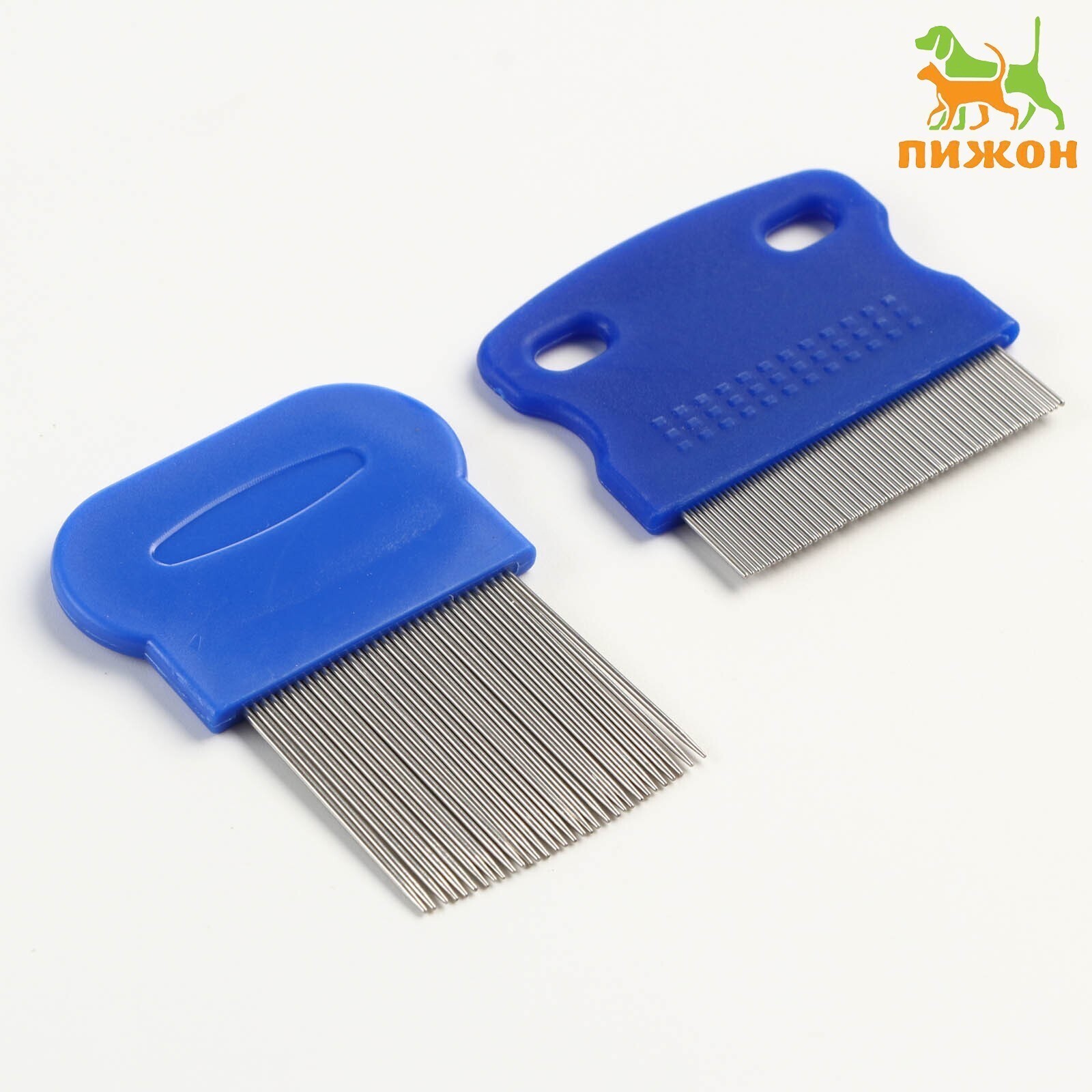 Набор из 2 расчесок-гребешков, с короткими и длинными зубьями, синий