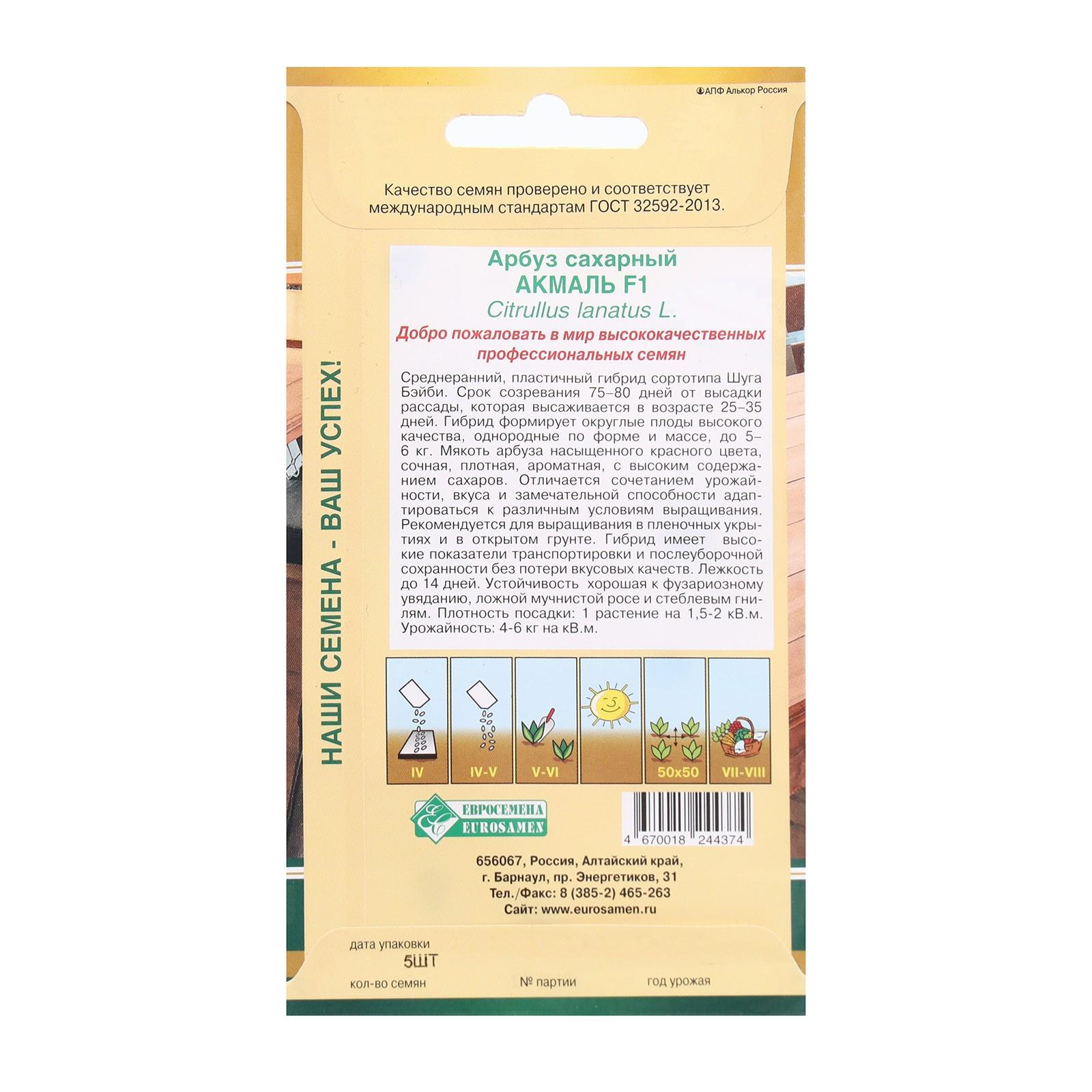 Семена Арбуз сахарный Акмаль F1, 5 шт