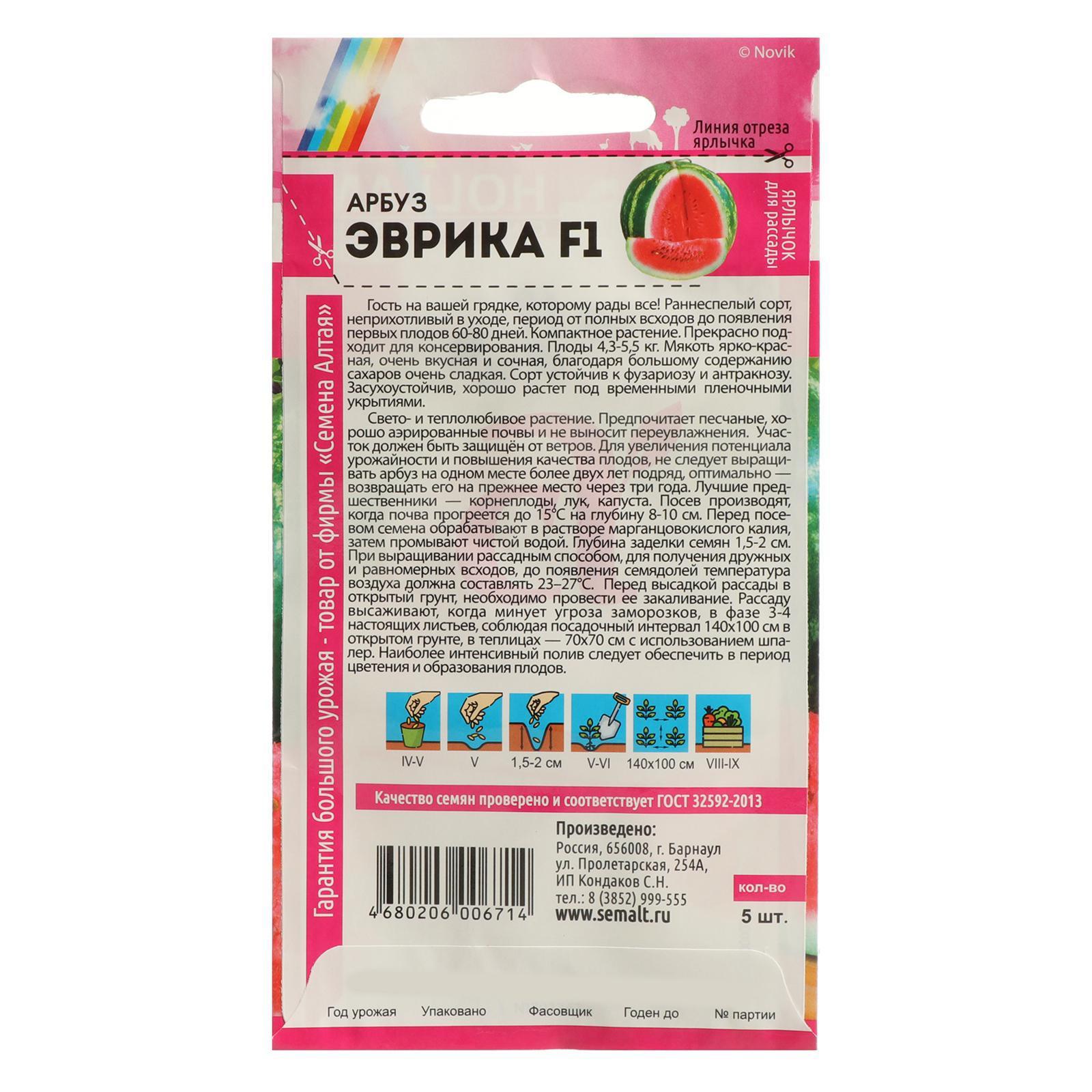 Семена Арбуз "Эврика", F1, Seminis, Сем. Алт, ц/п, 5 шт