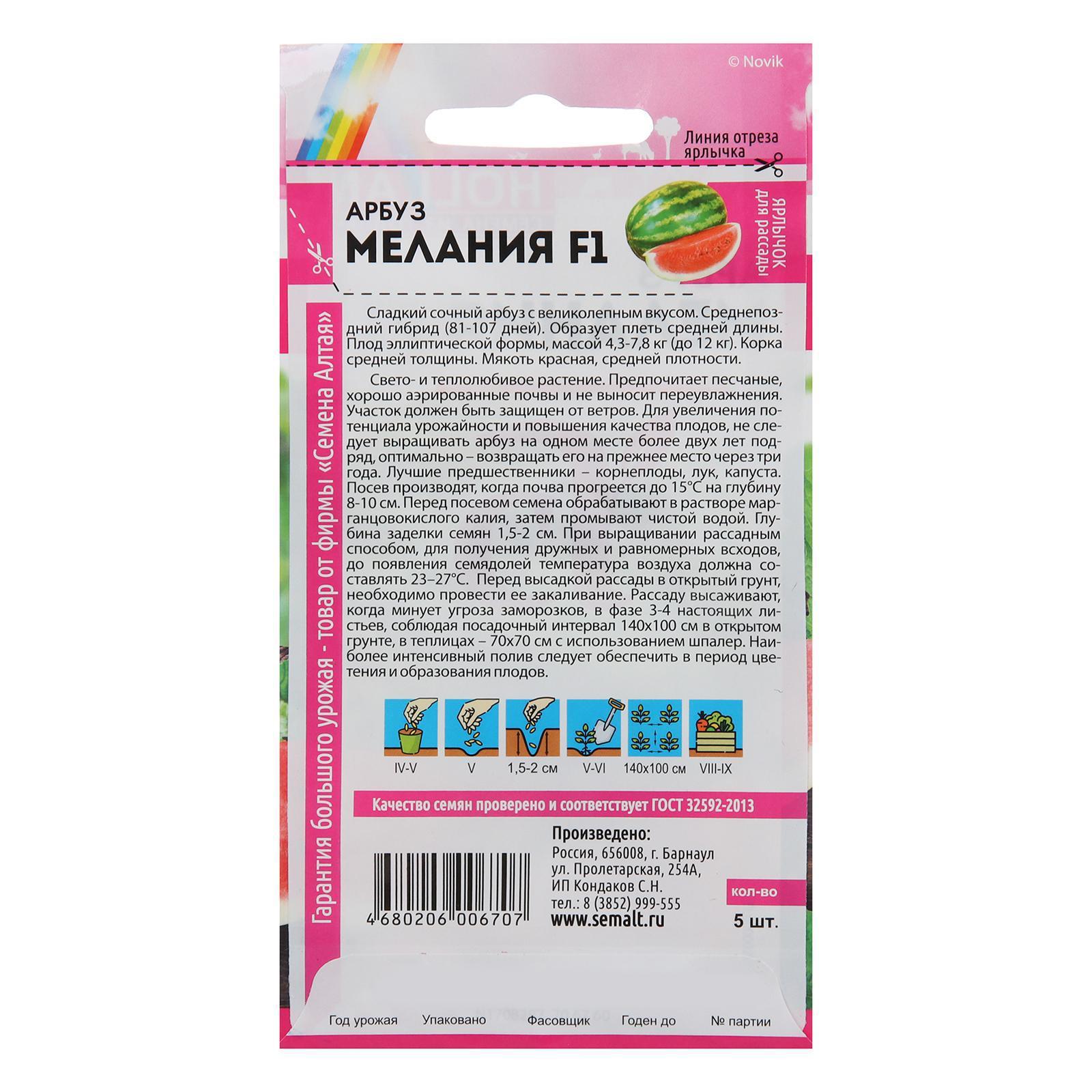 Семена Арбуз "Мелания F1", Сем. Алт, ц/п, 5 шт