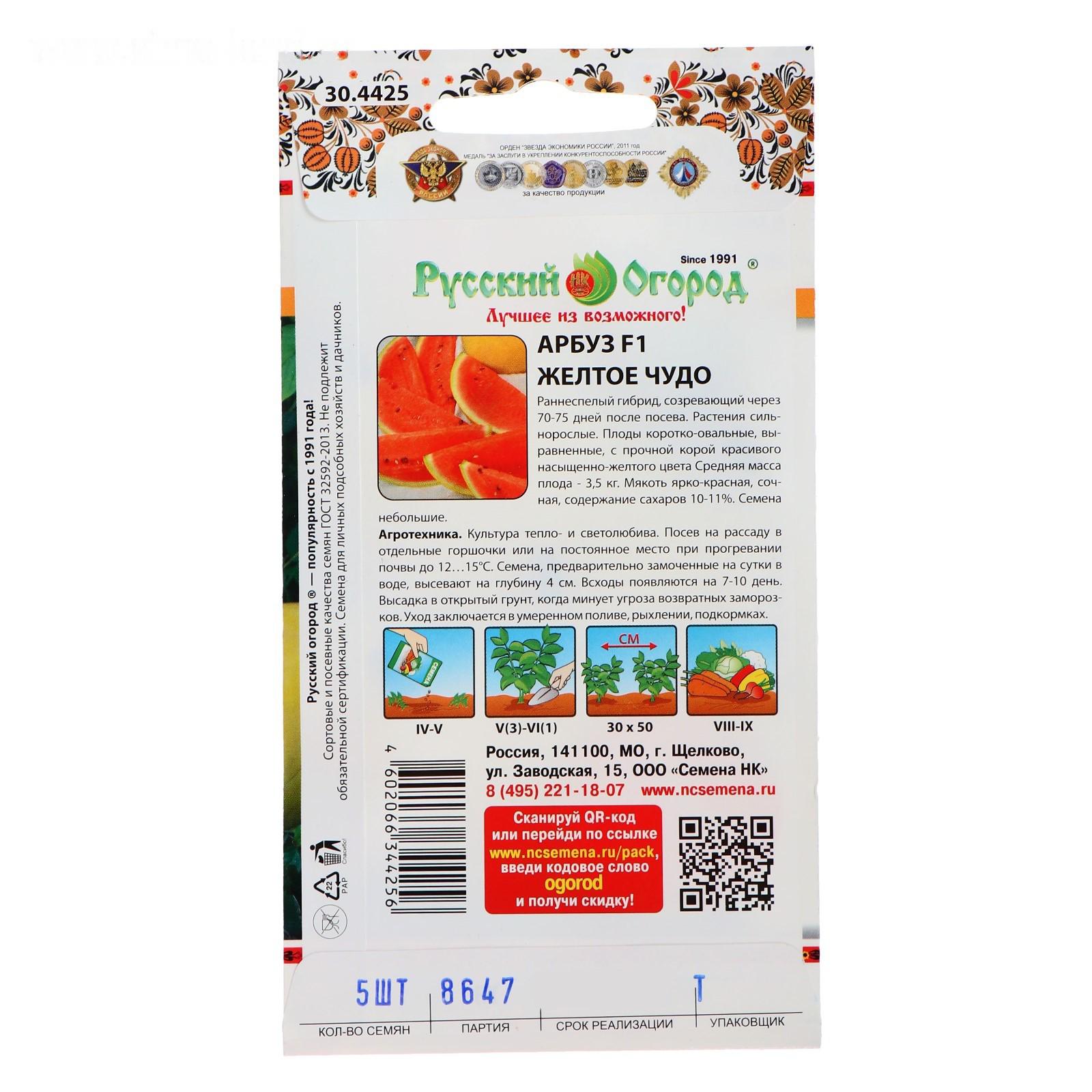Семена Арбуз "Желтое чудо" F1 серия Русский огород, 5 шт