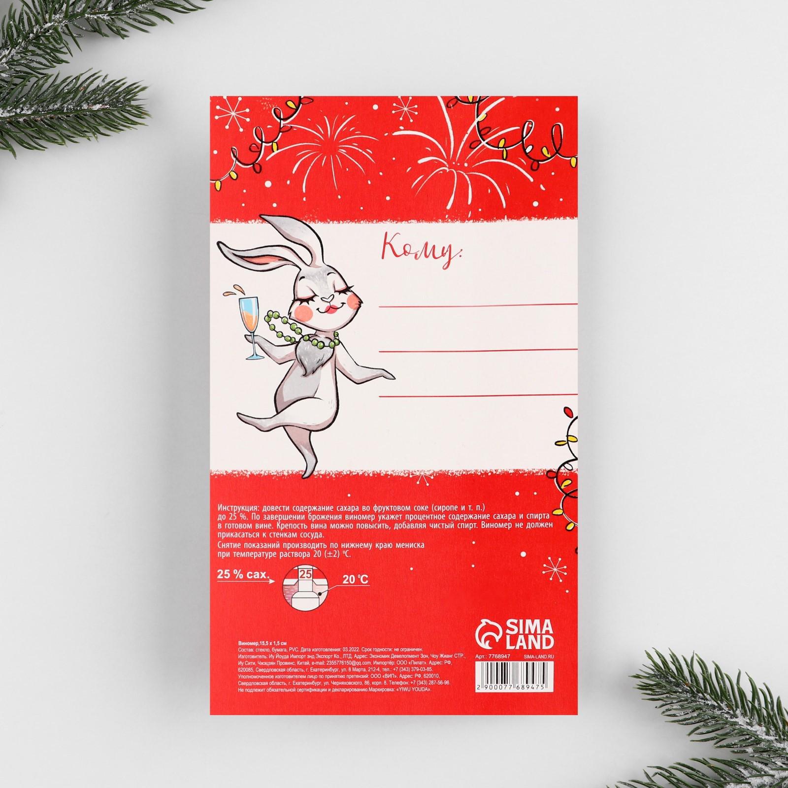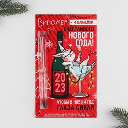 Виномер и наклейки на бутылку «Счастивого Нового года»