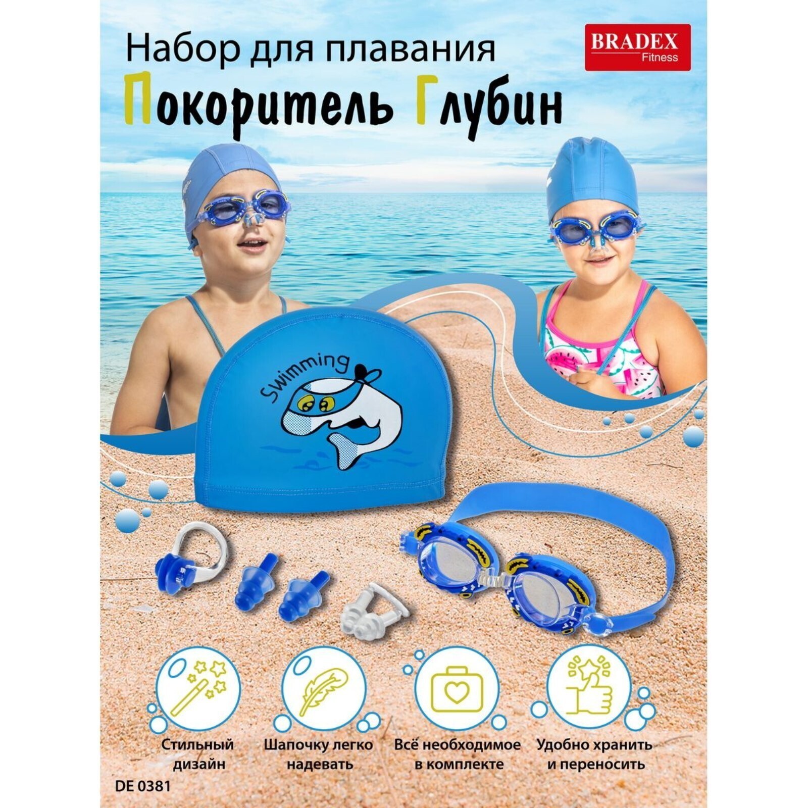 • Составляющие набора Беруши, Клипса, Очки для плавания, Шапочка для плавания