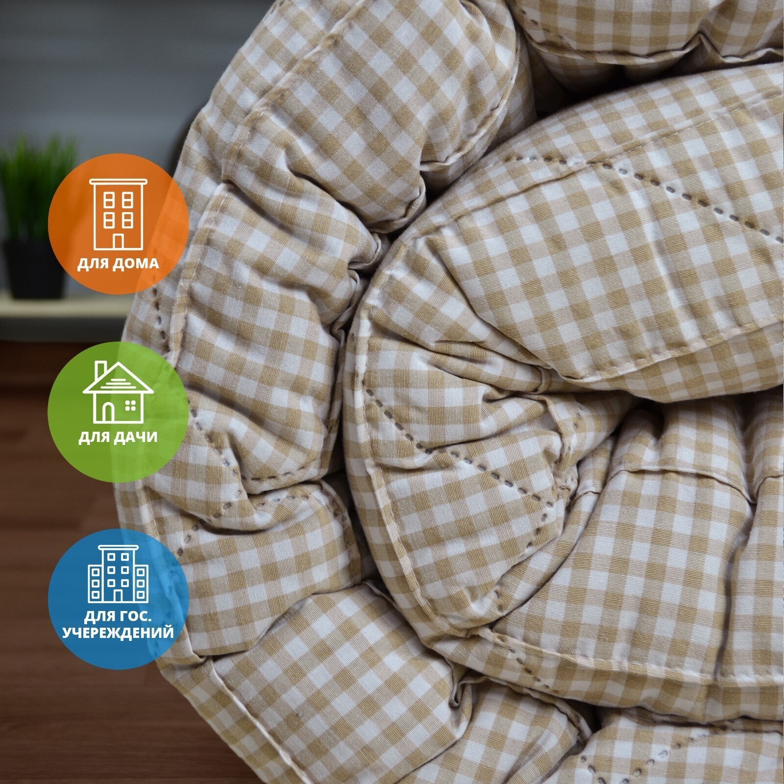Благодаря износостойкому текстилю с высоким содержанием хлопка, простёганному на полиэфирном объёмном пласте, чехол пышный и прочный. А его дизайн, расцветка и фактура придают изделию современный, актуальный вид. Современная технология стёжки не позволяет материалам расслоиться. Сочетание современного чехла и регенерированного волокна придает изделию дополнительный объем и комфорт!