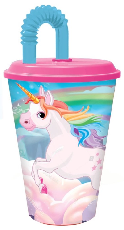 Стакан пластиковый с соломинкой и крышкой (спортивный, 430 мл). Единороги Stor 277288