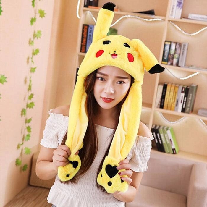Шапка Пикачу светящаяся с двигающимися ушками, желтая
