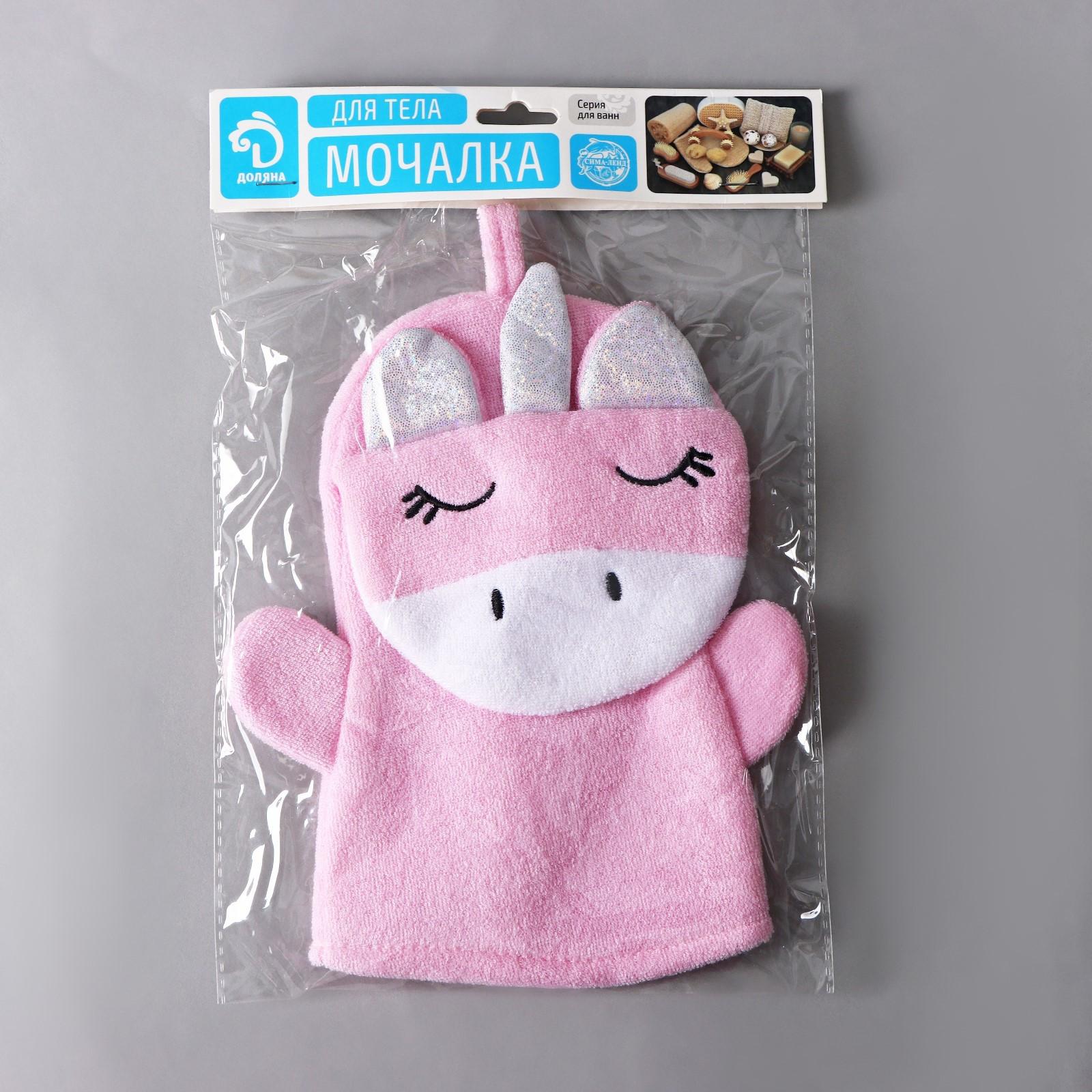Мочалка-варежка детская для купания Доляна «Единорожка»