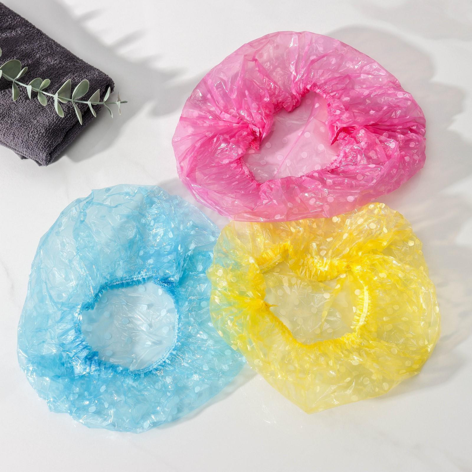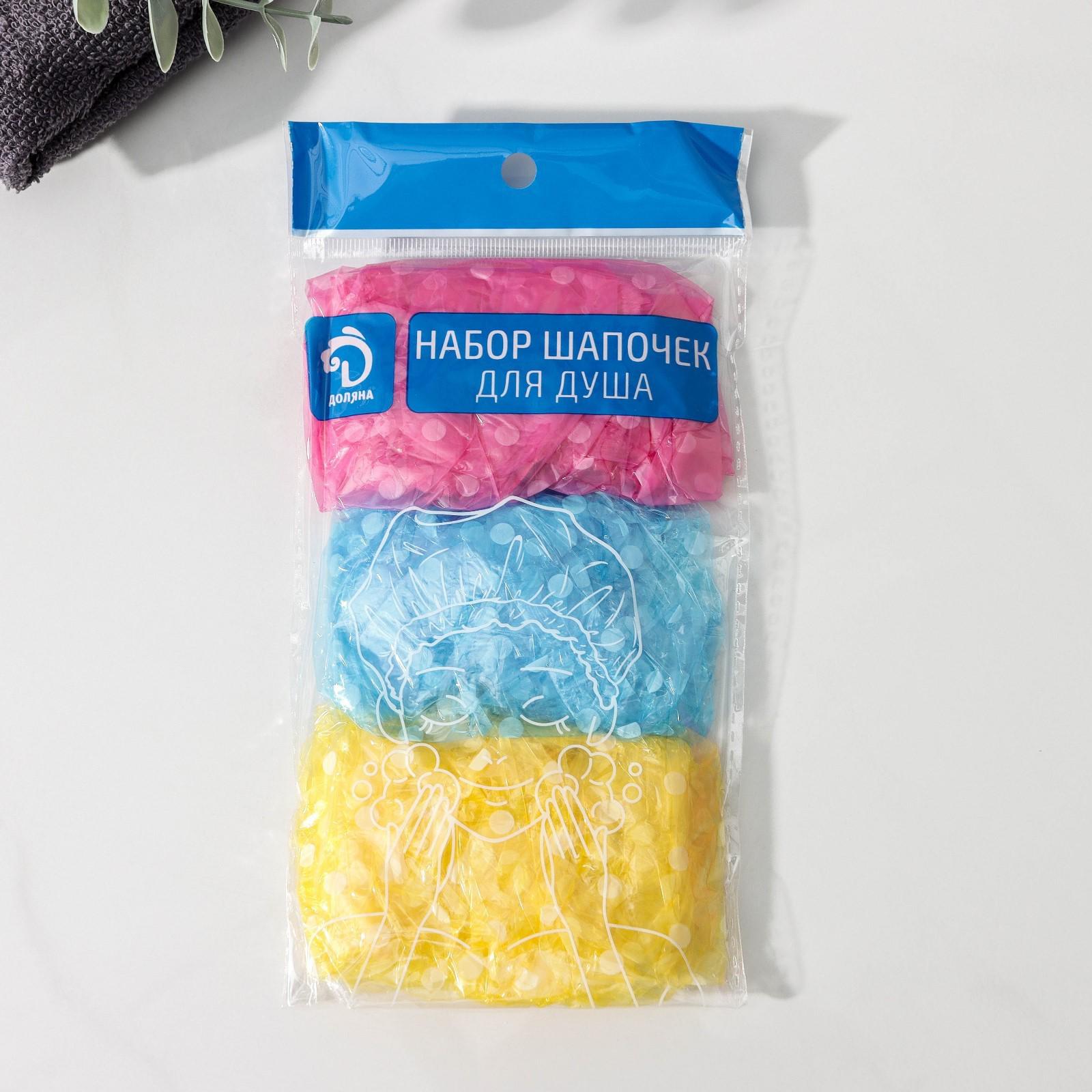 Набор шапочек для душа, 3 шт, полиэтилен, цвет МИКС