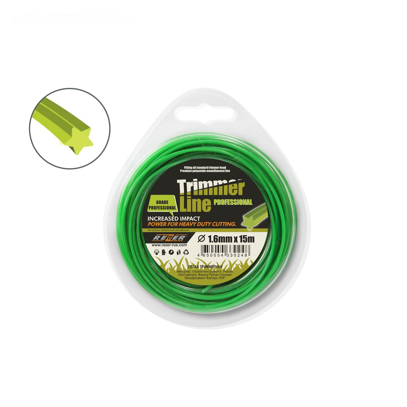 Леска для триммера Rezer 03.007.00068, d=1.6 мм, 15 м, сечение звезда