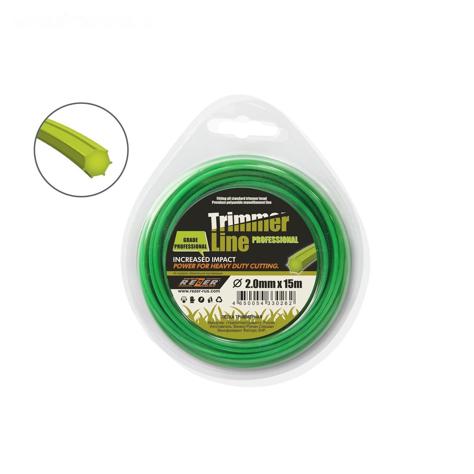 Леска для триммера Rezer 03.007.00073, d=2 мм, 15 м, сечение семиугольник