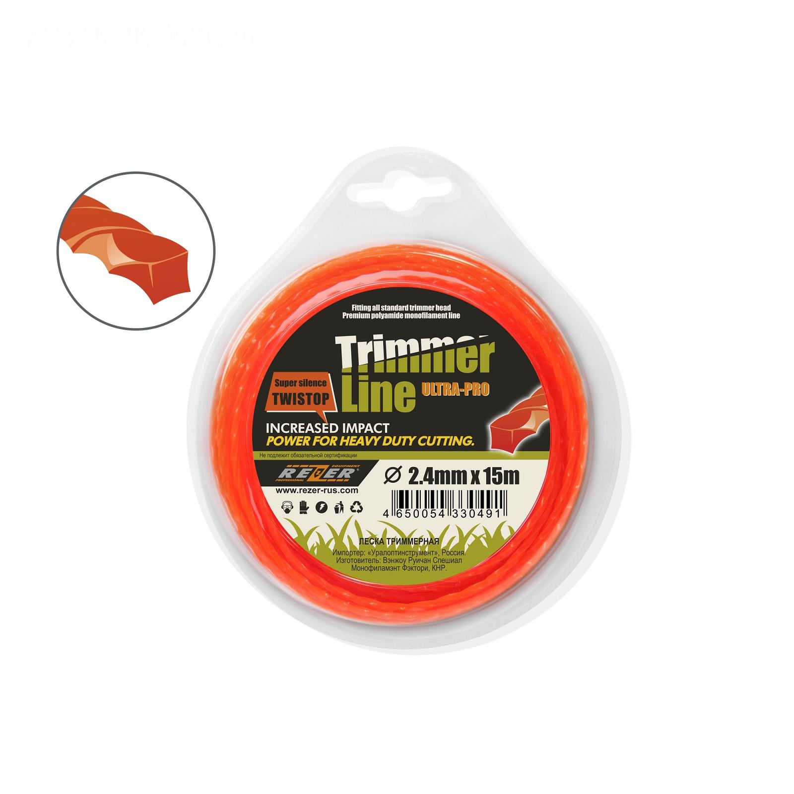 Леска для триммера Rezer 03.007.00101, d=2.4 мм, 15 м, витой квадрат