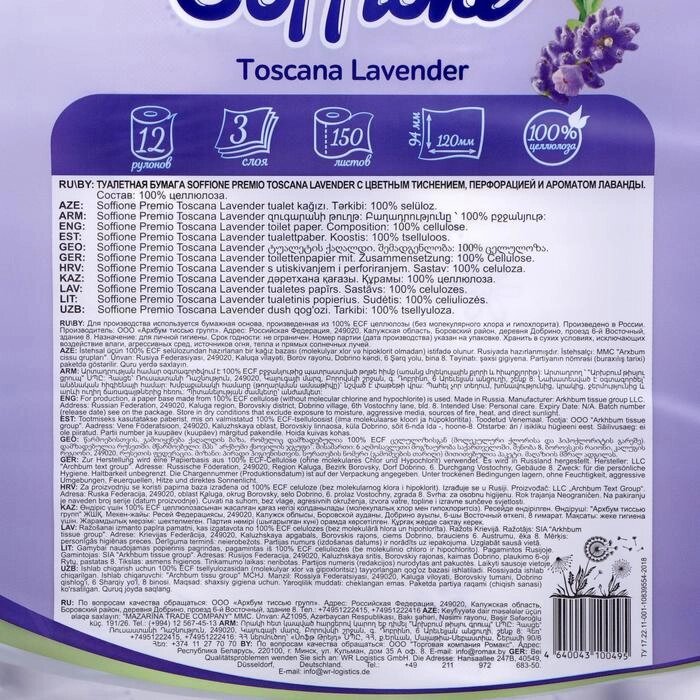 Туалетная бумага Soffione Premium Toscana Lavender, 3 слоя, 12 рулонов