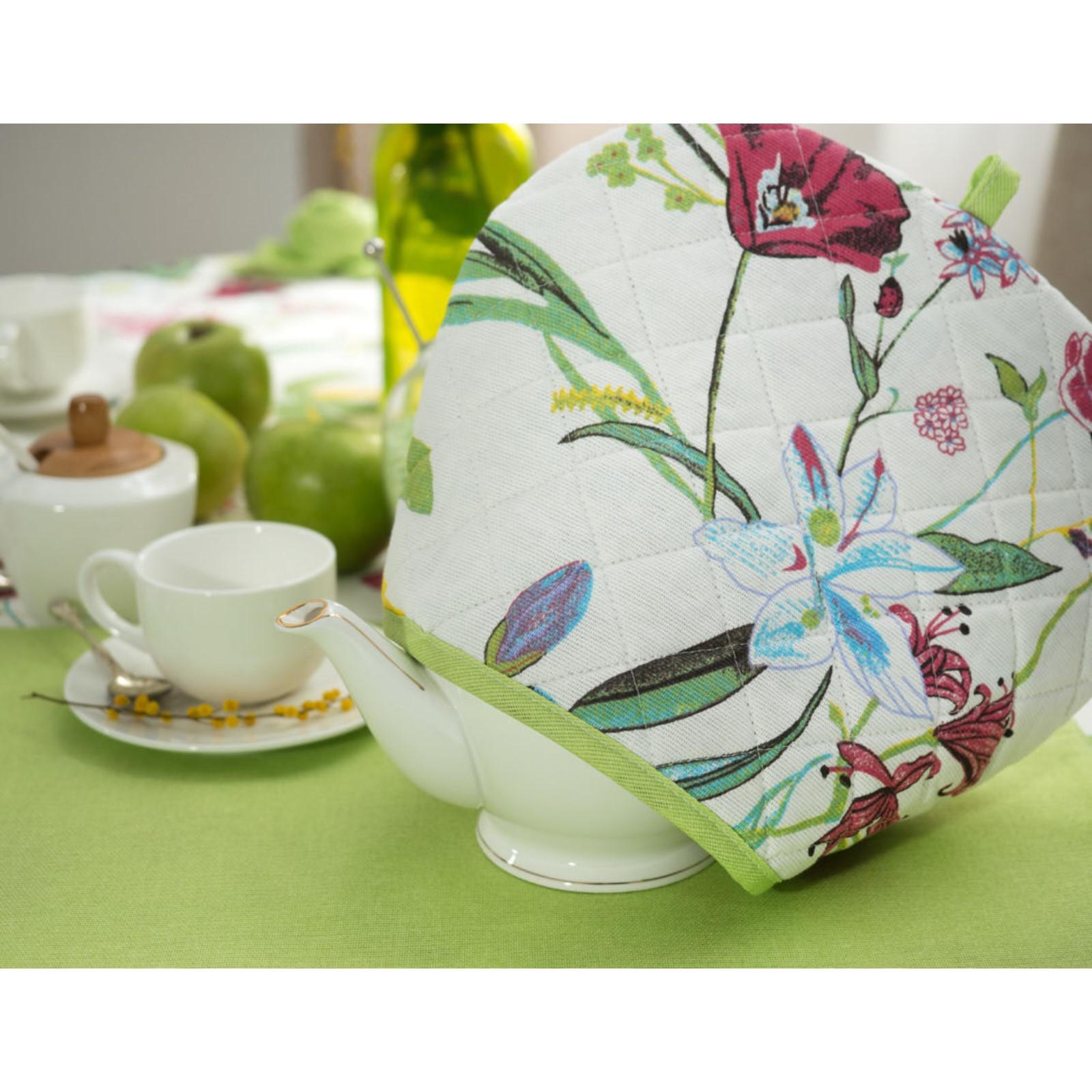 Чехол на чайник Flowers, размер 30х25 см, цвет белый