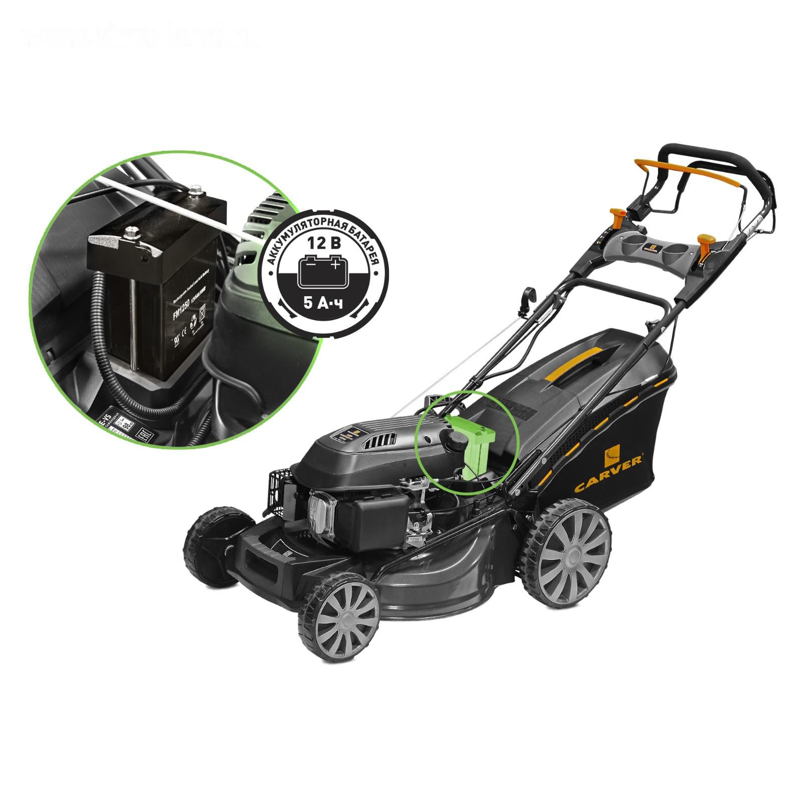 Газонокосилка CARVER LMG-3653DMSE-VS, бензиновая, 3.6 кВт, ширина/высота 52.5 см/25-75 мм