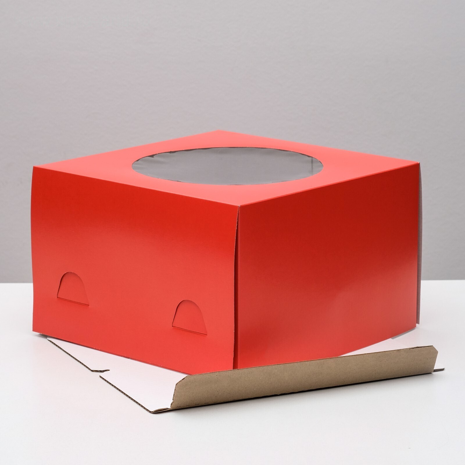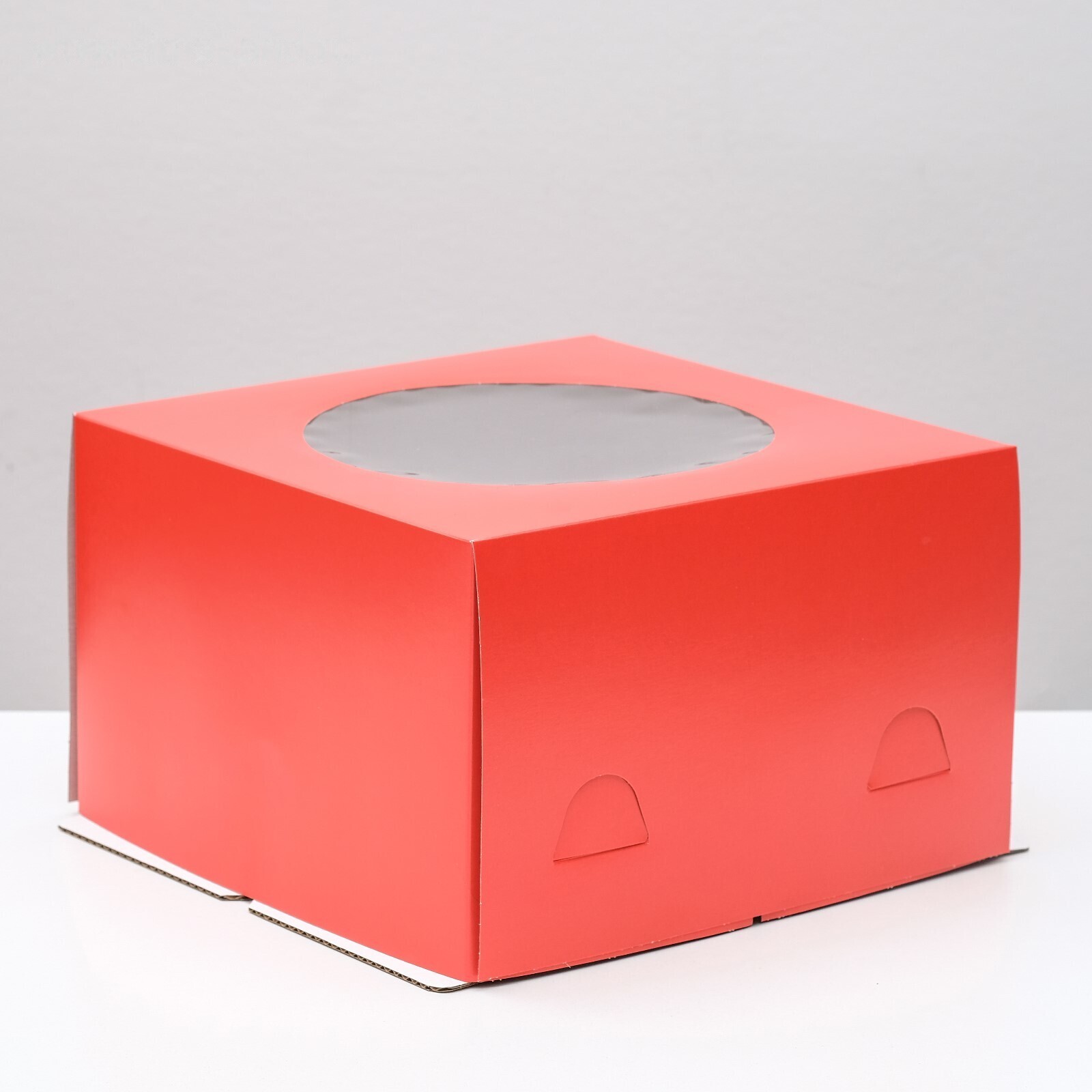 Кондитерская упаковка с окном, красный, 30 х 30 х 19 см