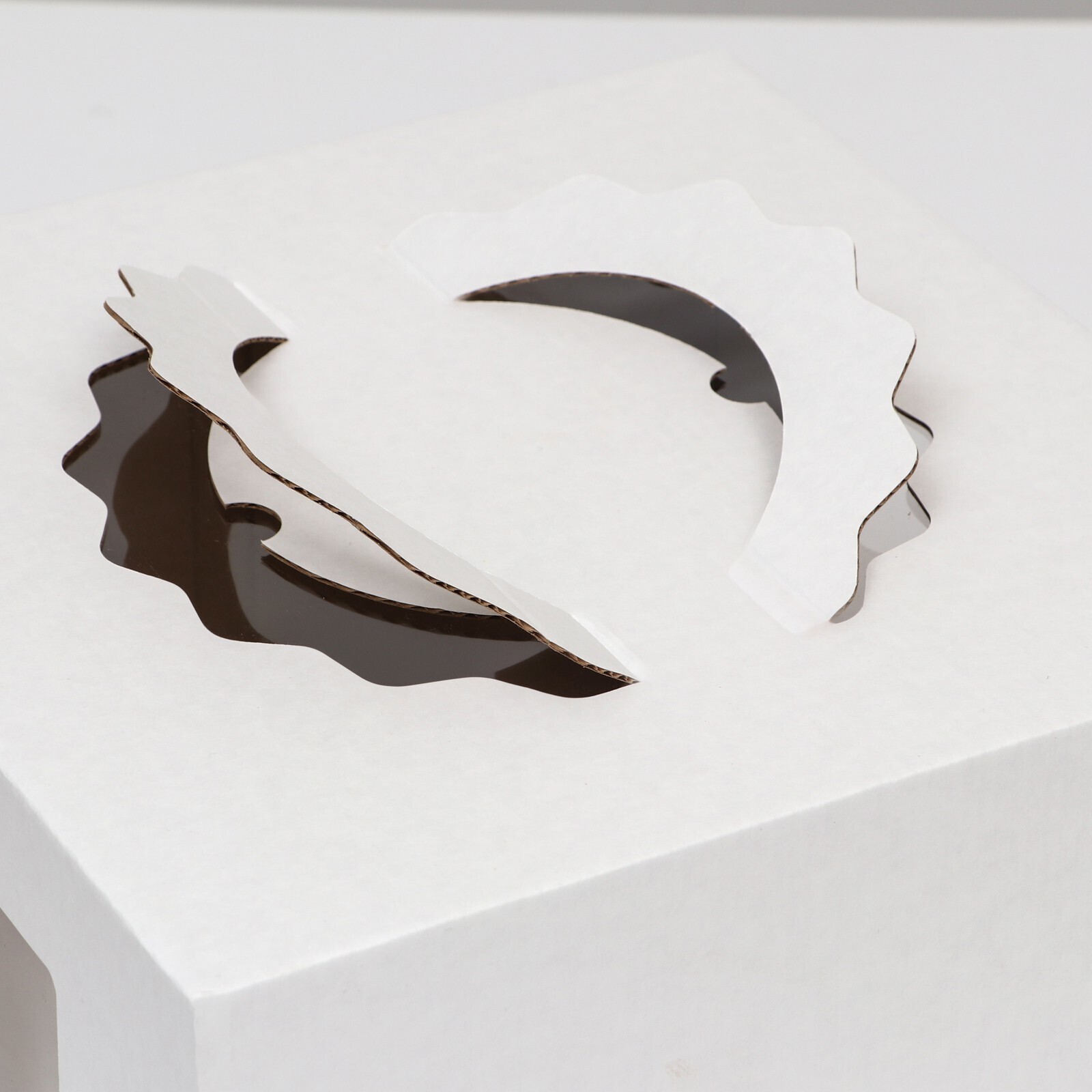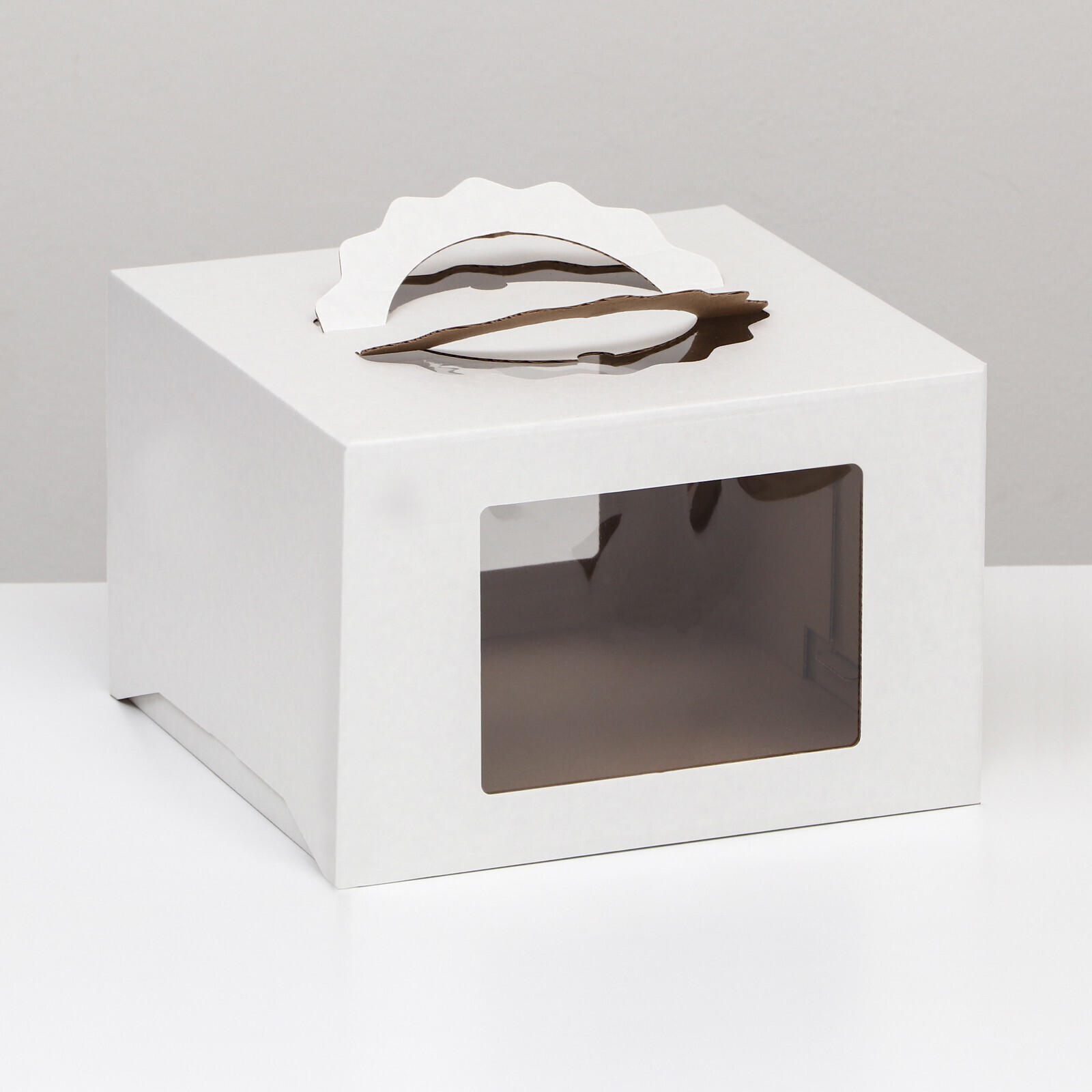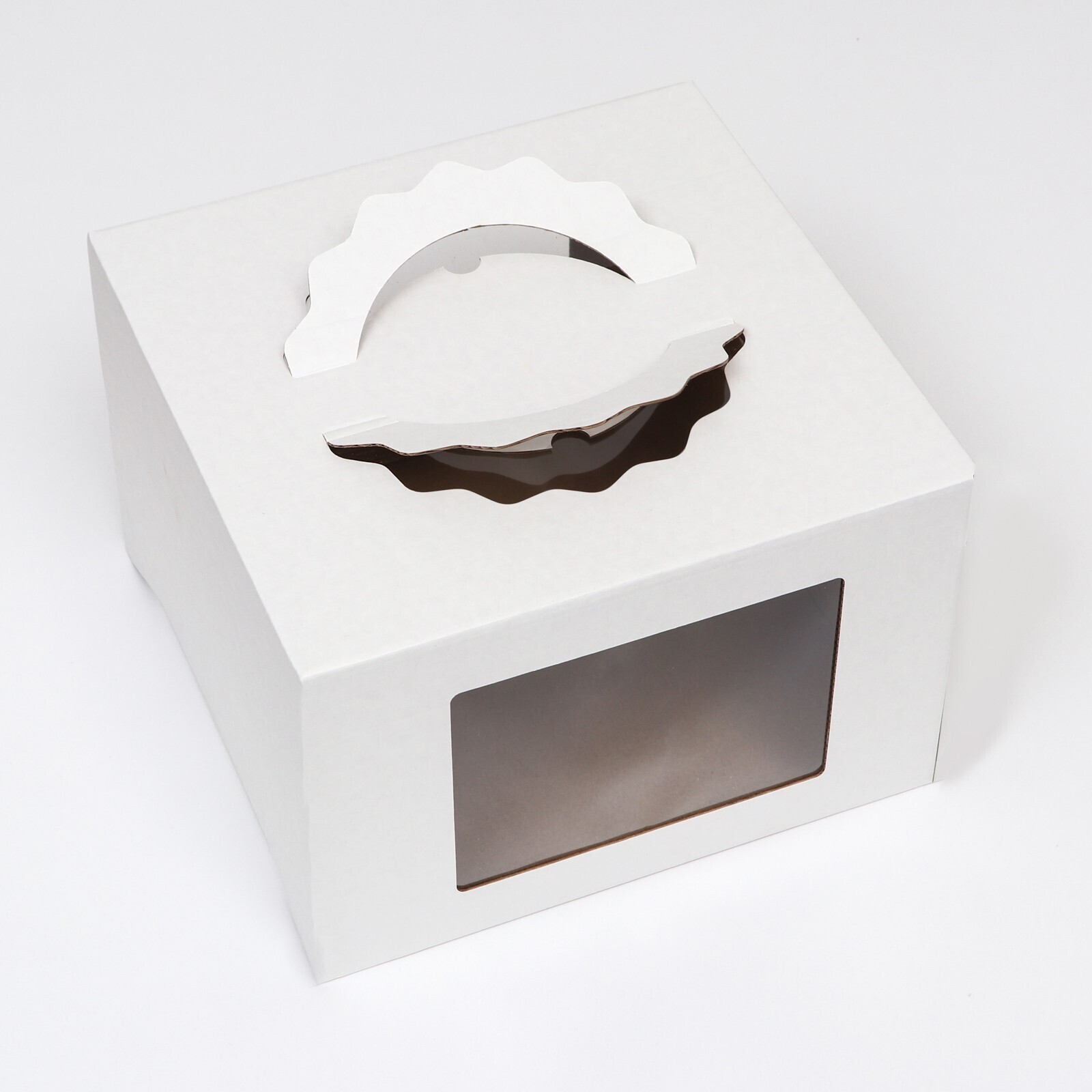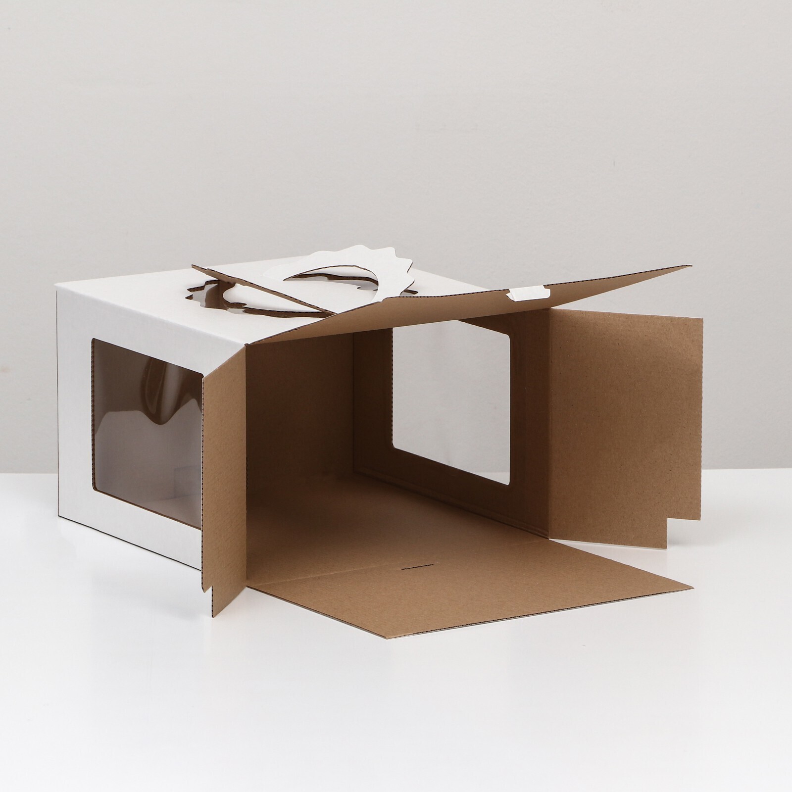 Коробка под торт 3 окна, с ручками, белая, 30 х 30 х 20 см
