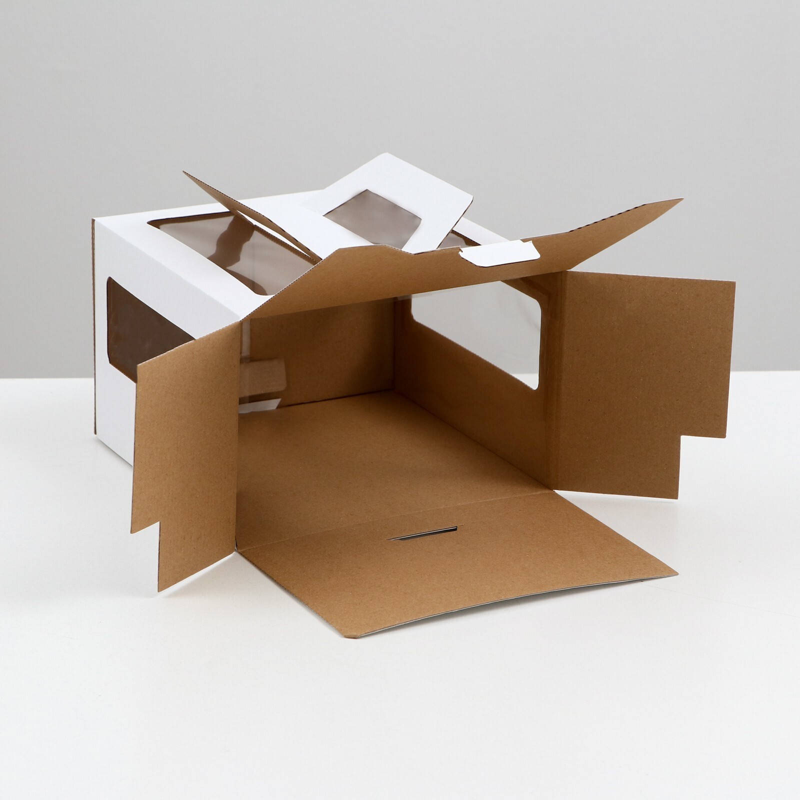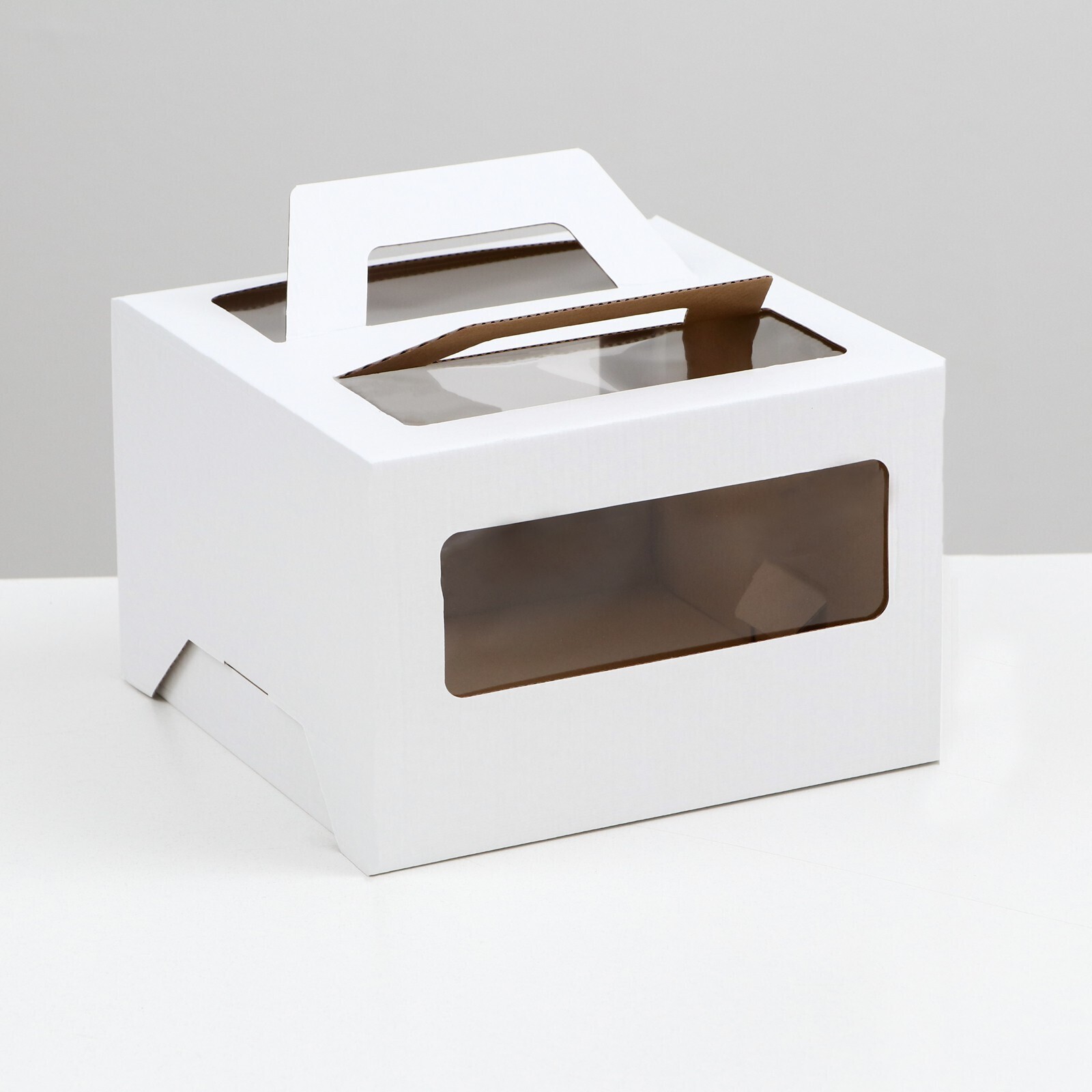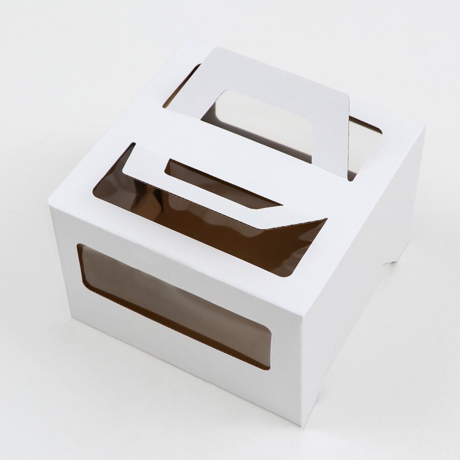 Коробка под торт 2 окна, с ручками, белая, 22 х 22 х 15 см