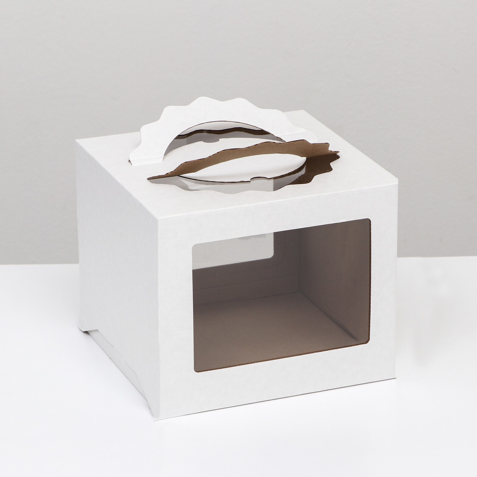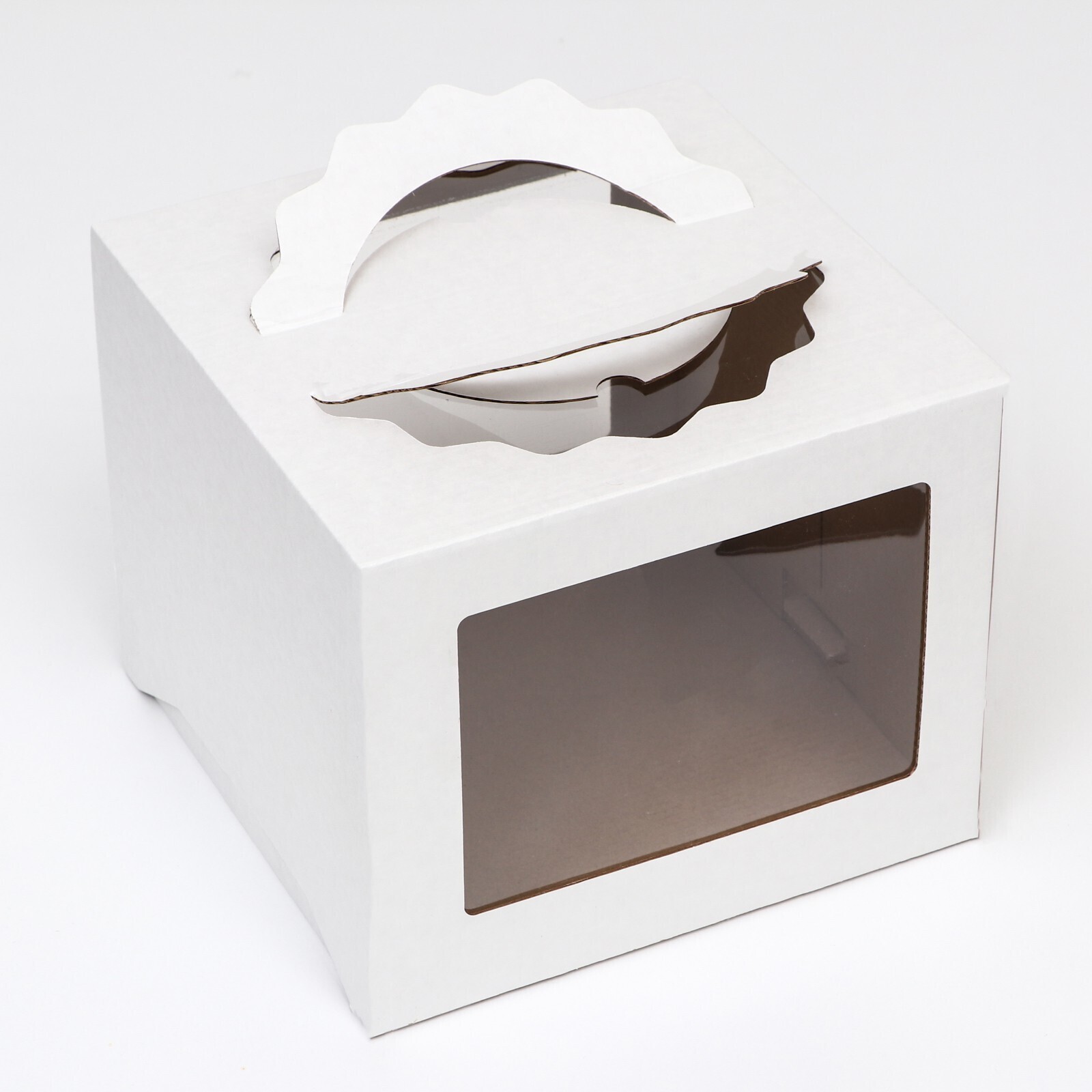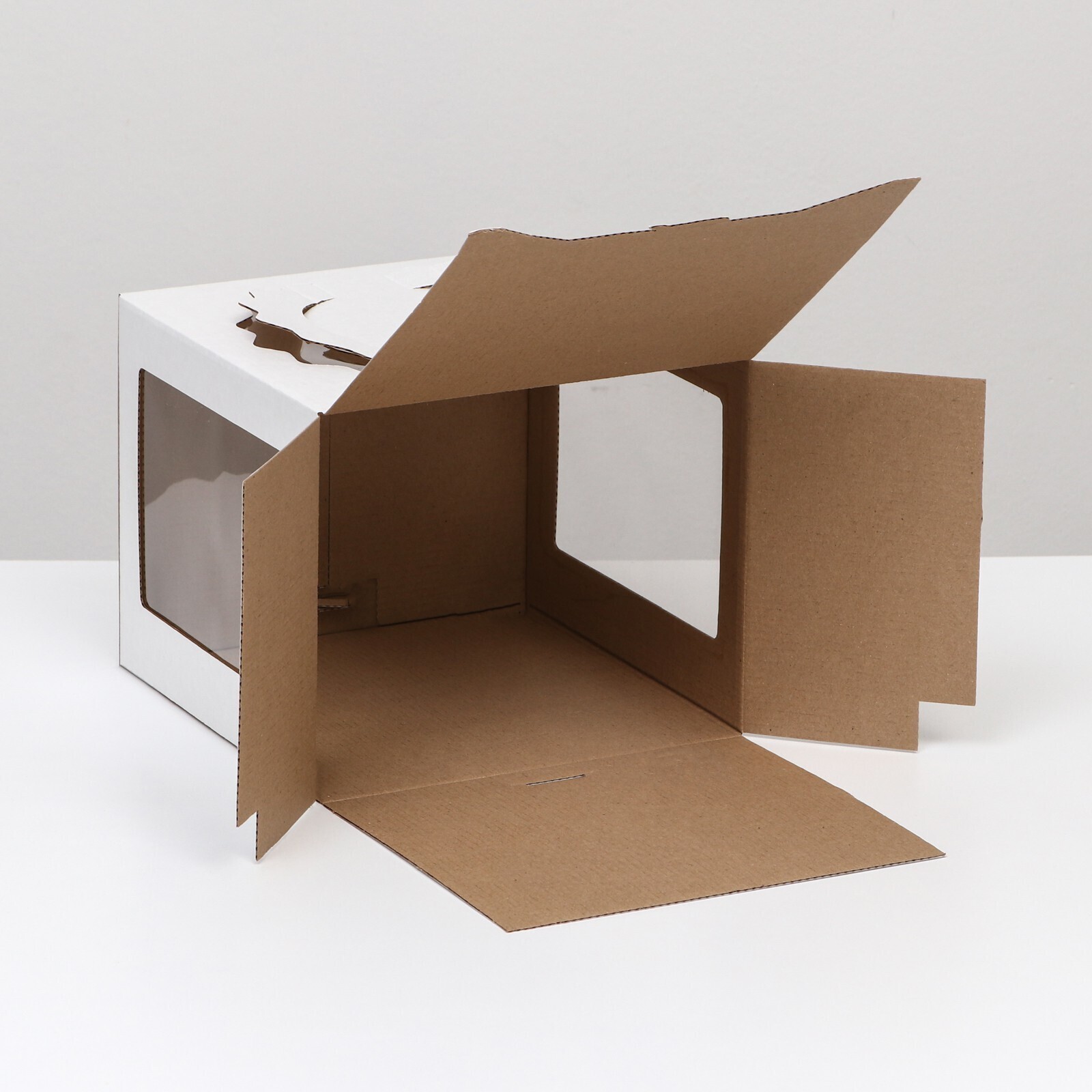 Коробка под торт 3 окна, с ручками, белая, 24 х 24 х 20 см