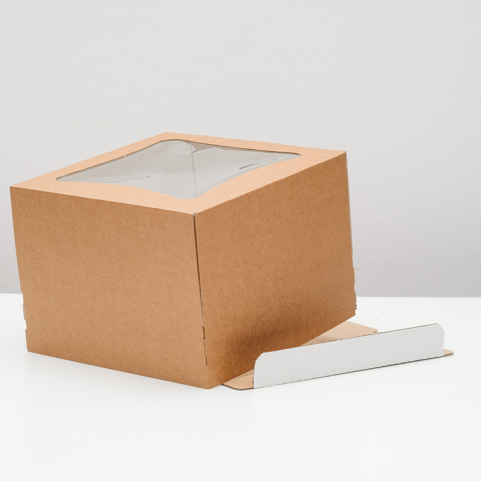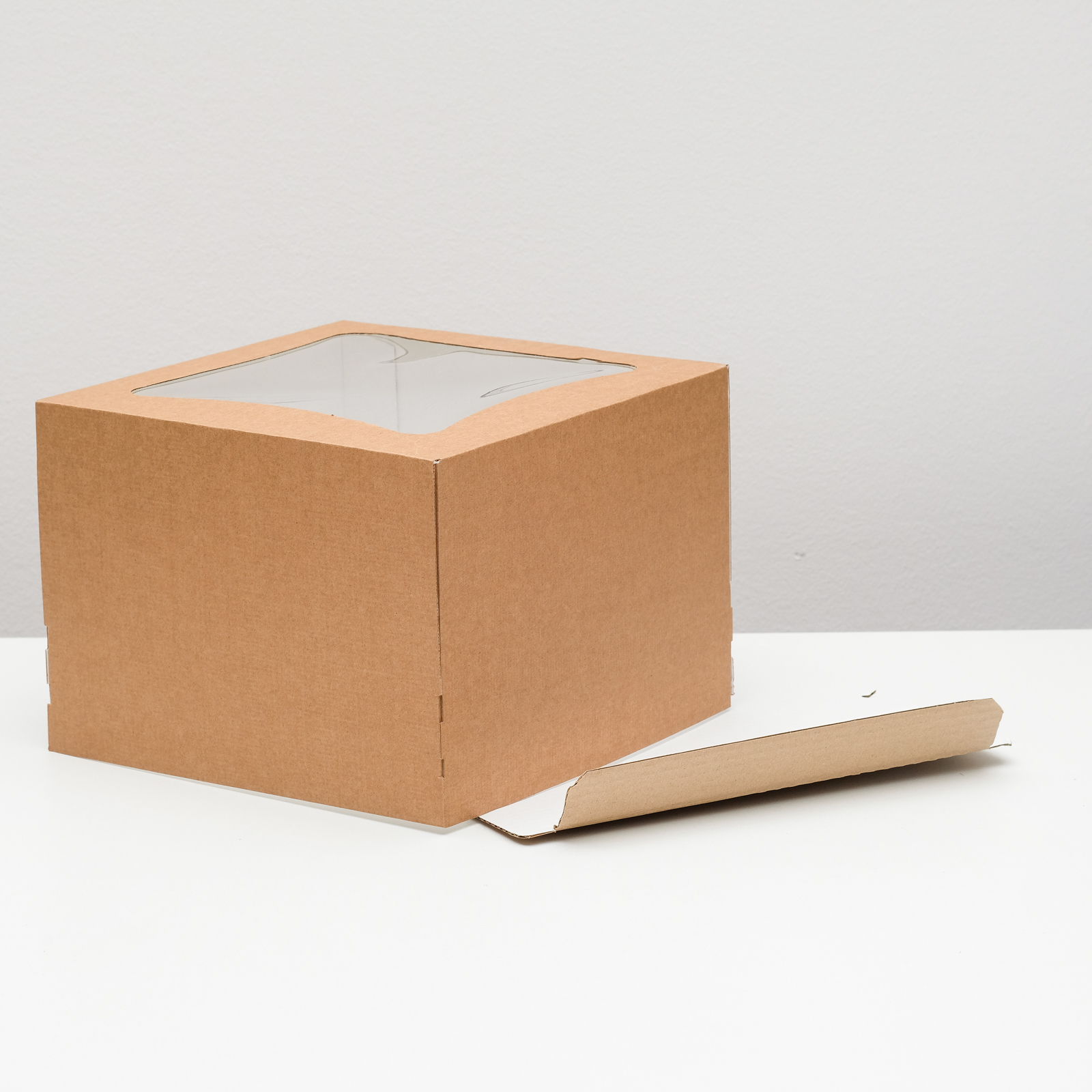 Кондитерская упаковка с окном ромб, крафт, 27 х 27 х 20 см