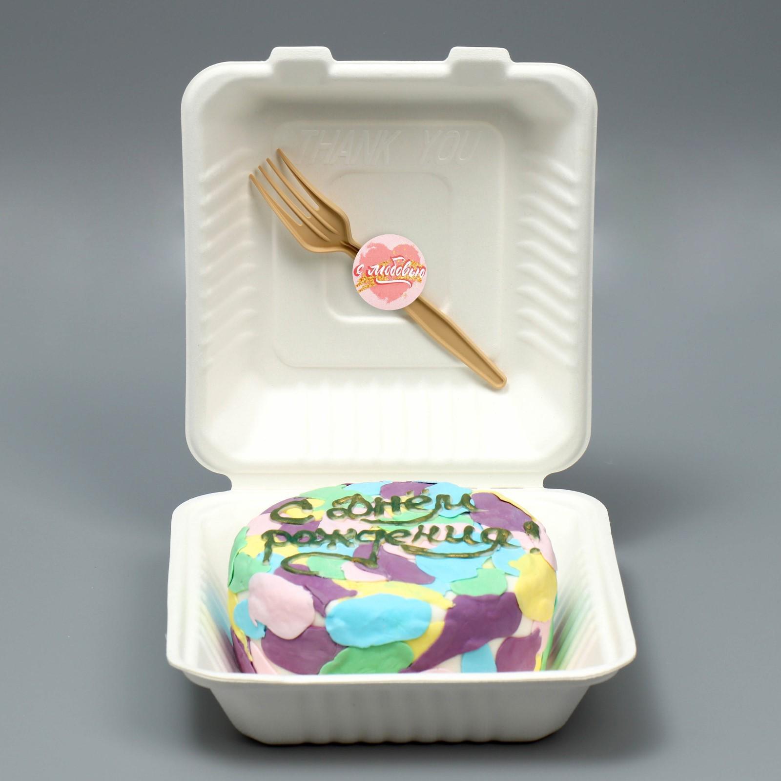 Коробка для бенто-торта с вилкой «С любовью», 21 х 20 х 7,5 см