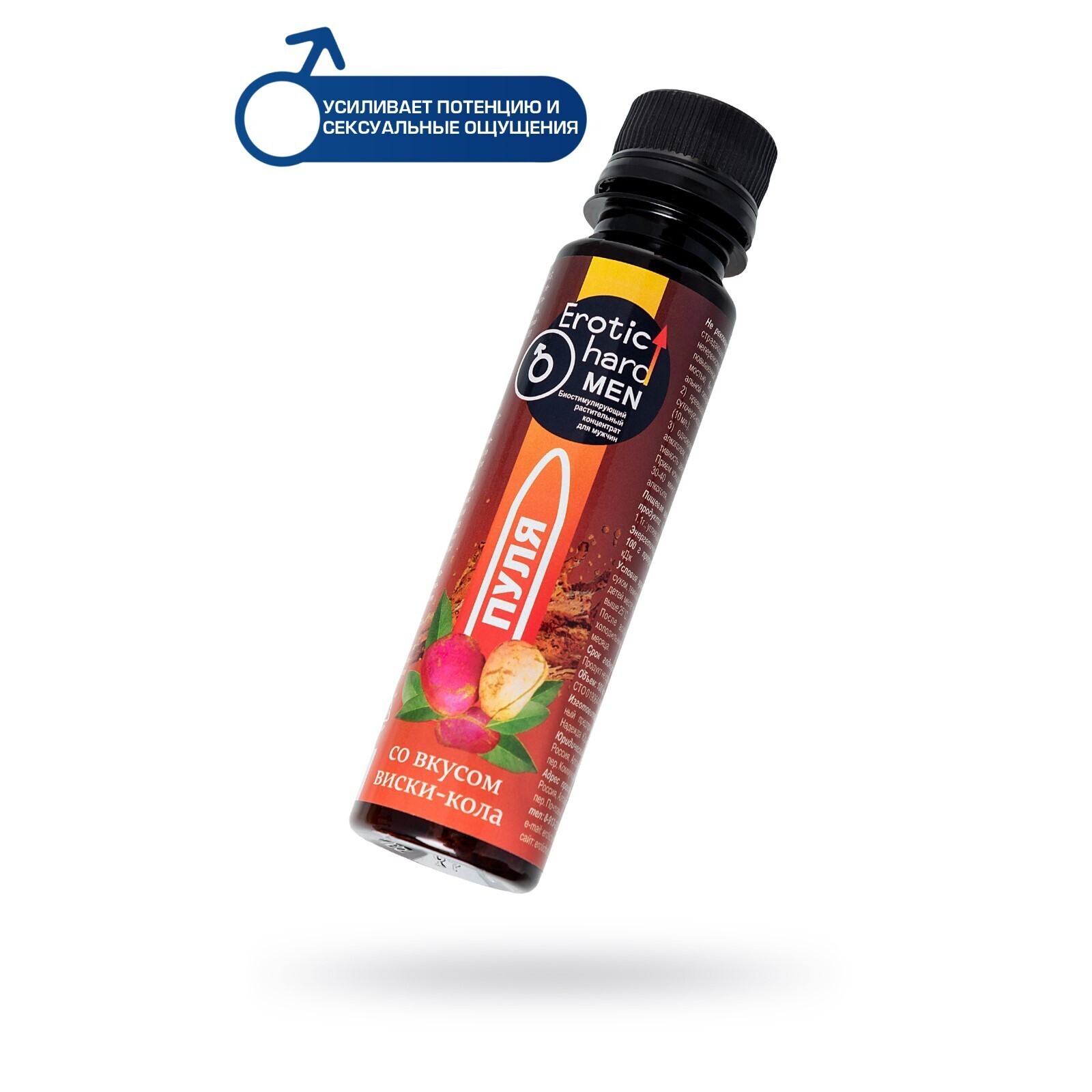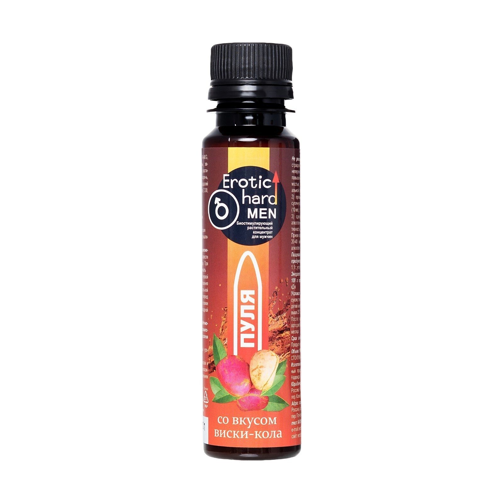 Биостимулирующий концентрат для мужчин Erotic hard «Пуля» со вкусом виски-кола, 100 мл