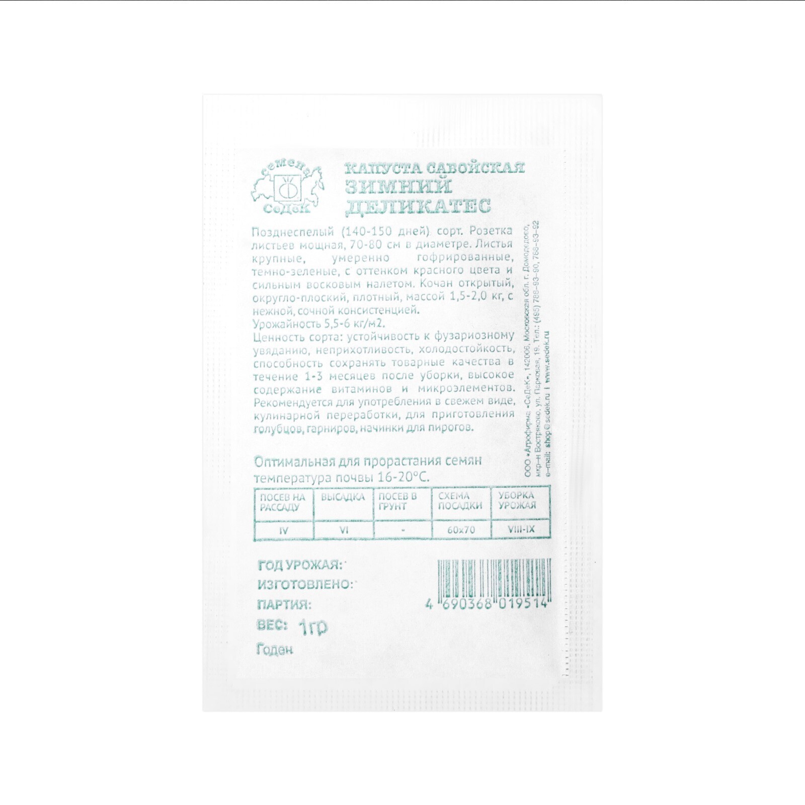 Семена капуста Зимний Деликатес, б/п, 1 г