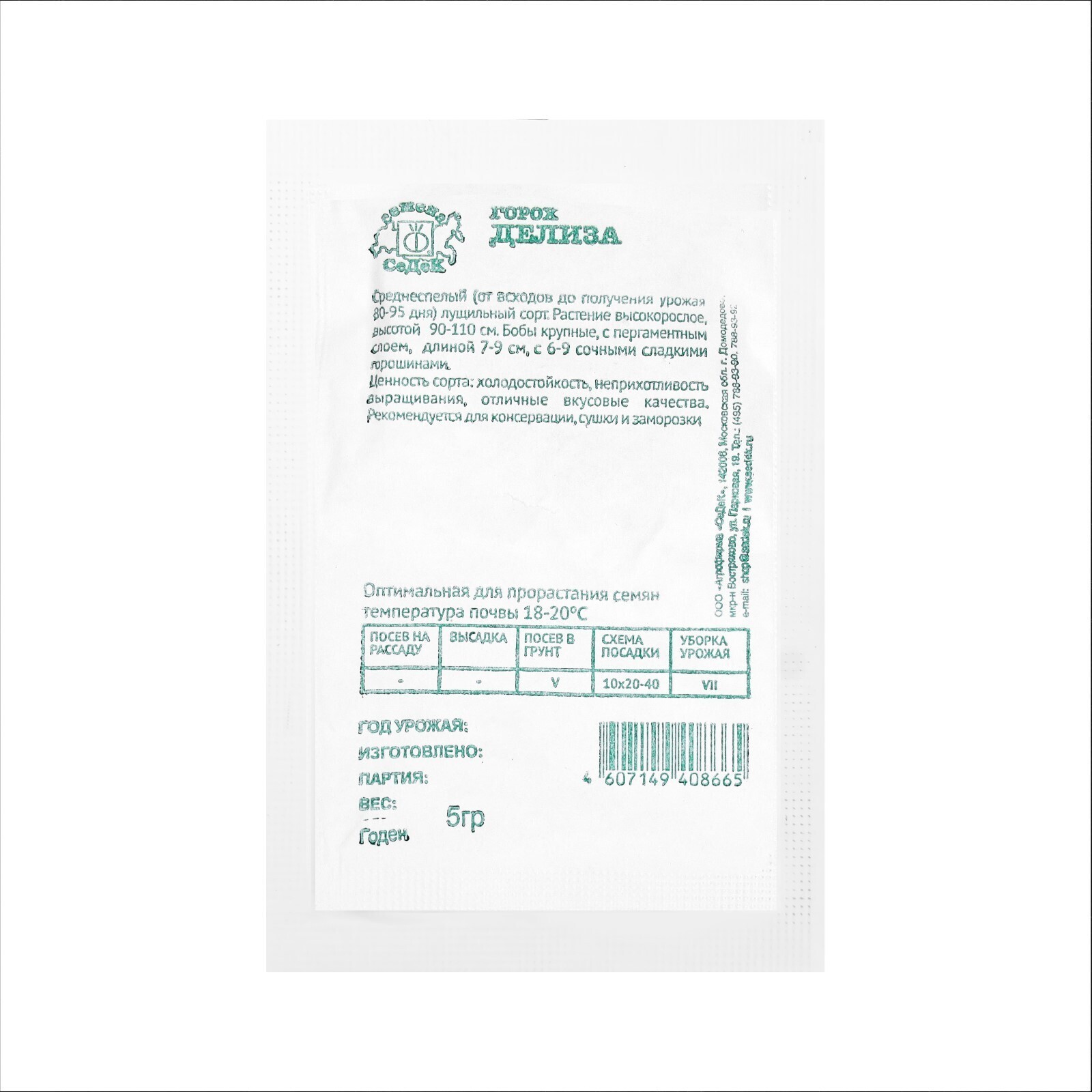Среднеспелый (от всходов до получения урожая 80-95 дня) лущильный сорт. Растение высокорослое, высотой 90-110 см. Бобы крупные, с пергаментным слоем, длиной 7-9 см, с 6-9 сочными сладкими горошинами.
