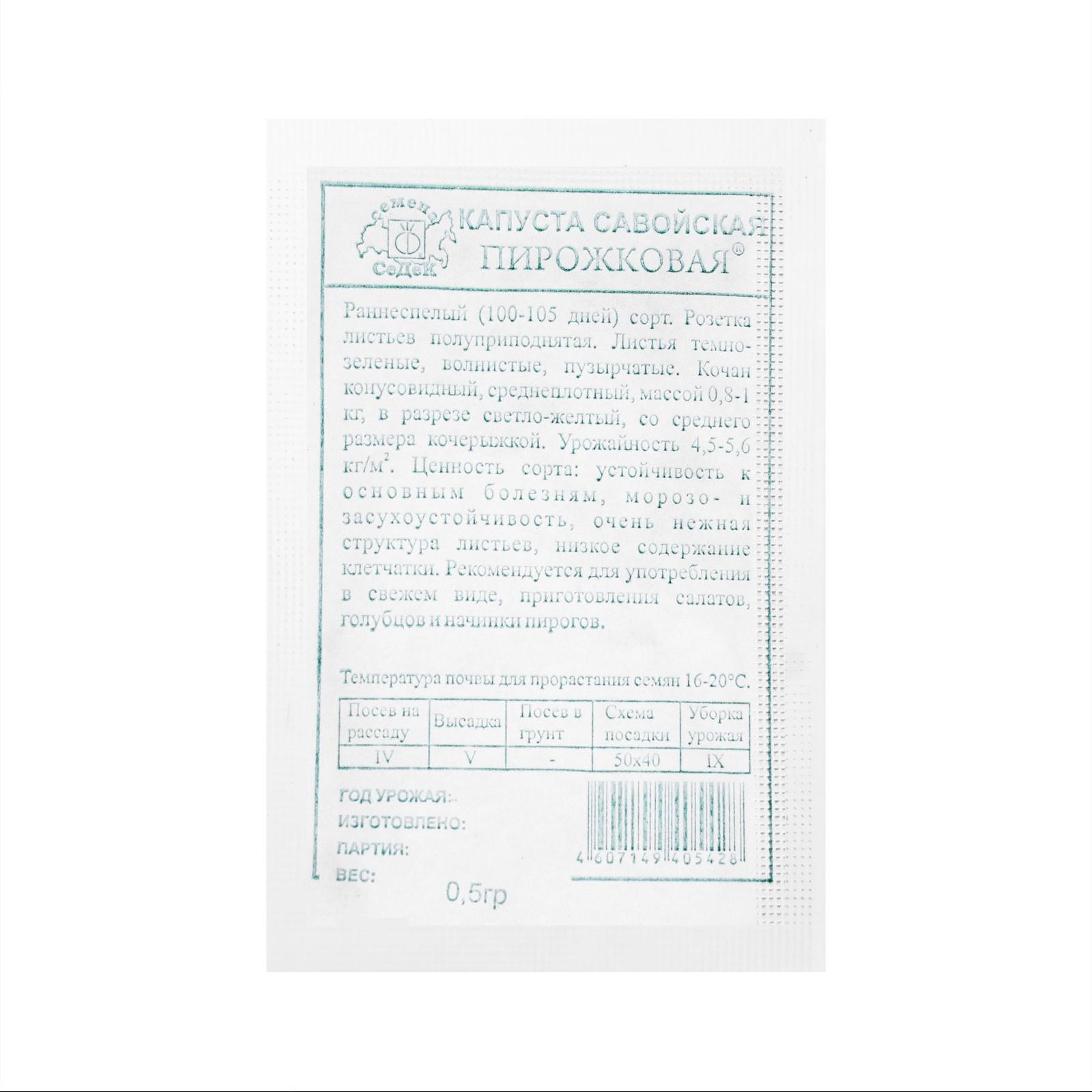 Семена капуста Пирожковая, б/п, 0,5 г