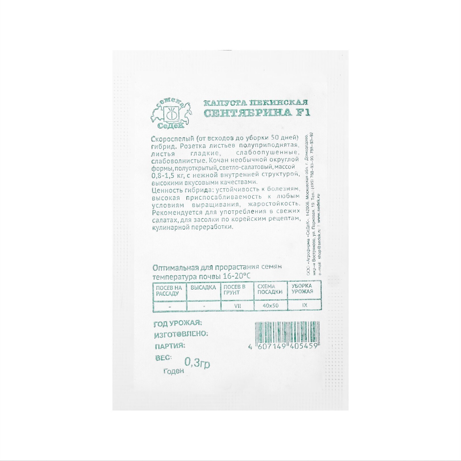 Семена капуста Сентябрина F1 пекинская, б/п, 0,3 г