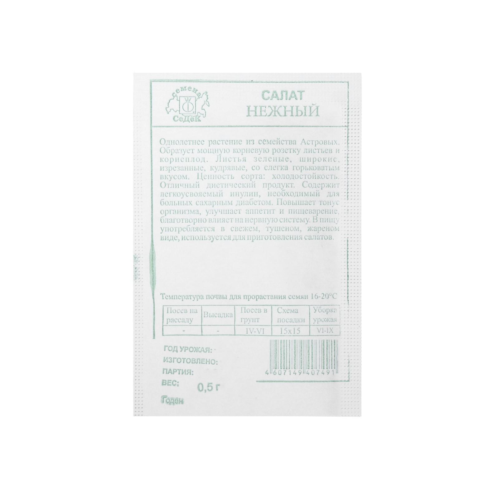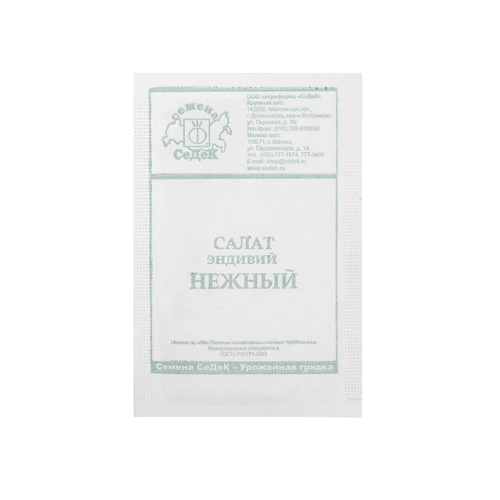 Салат Нежный (эндивий) - однолетнее растение с корнеплодом и изрезанной кудрявой листвой. Эндивий отличается приятным пряно-горьковатым вкусом. Листья окрашены в оттеночную гамму от желто-зеленого до темно-зеленых оттенков. Листья цикорного салата содержат инулин, благоприятно влияют на метаболические процессы организма. Рекомендуется для универсального употребления. Мощная розетка сочной хрустящей листвы массой в 400 г станет отличной добавкой к семейному меню в весенне-зимний период.