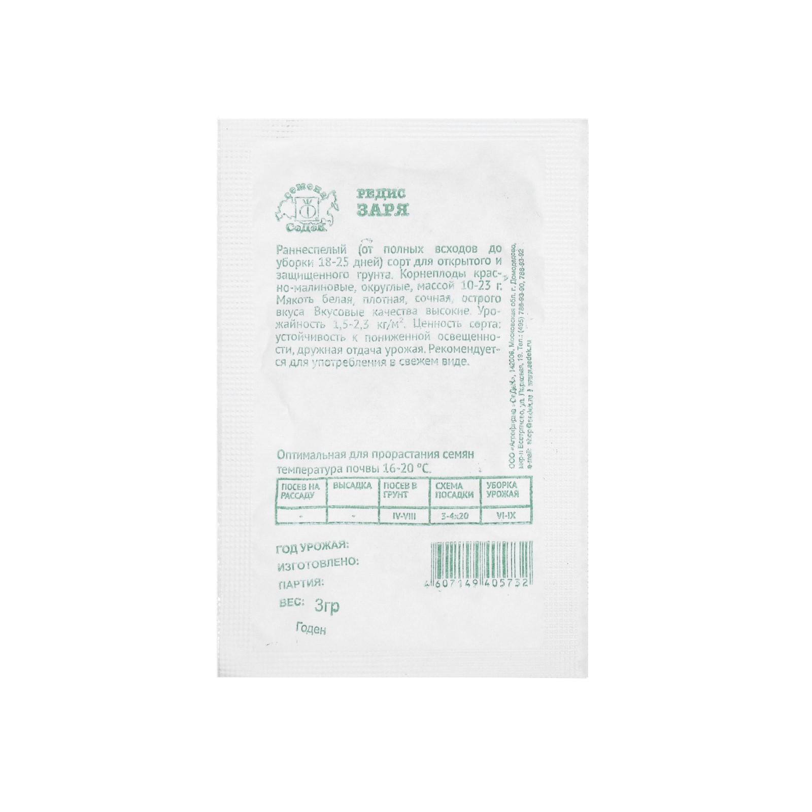 Семена редис Заря , б/п, 3 г