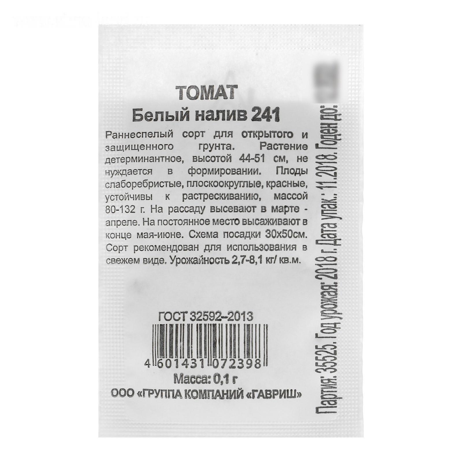 Семена Томат "Белый налив 241", раннеспелый, бп, 0,1 г