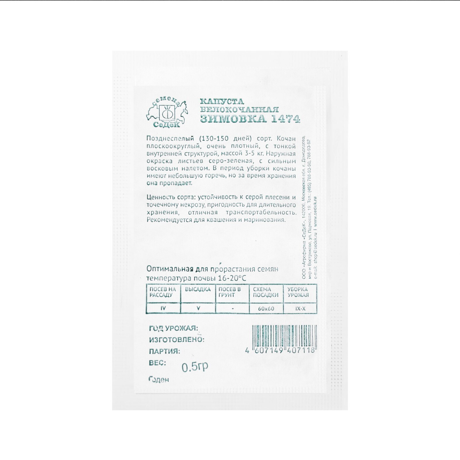 Семена капуста Зимовка 1474 белокачанная, б/п, 0,5 г