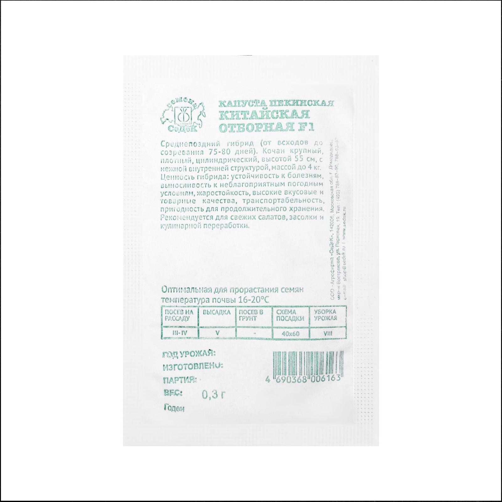 Семена капуста Китайская отборная F1, б/п, 0,3 г