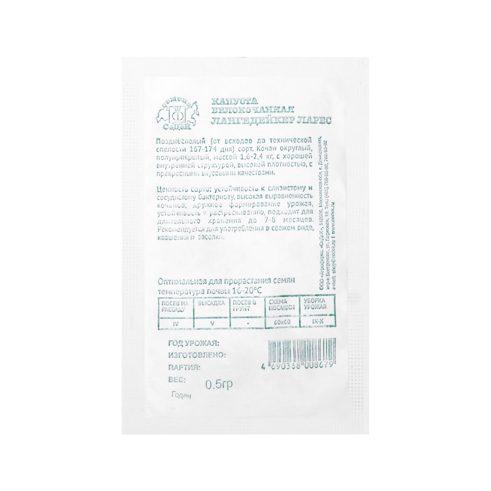 Семена капуста Лангедейкер Ларес белокачанная, б/п, 0,5 г