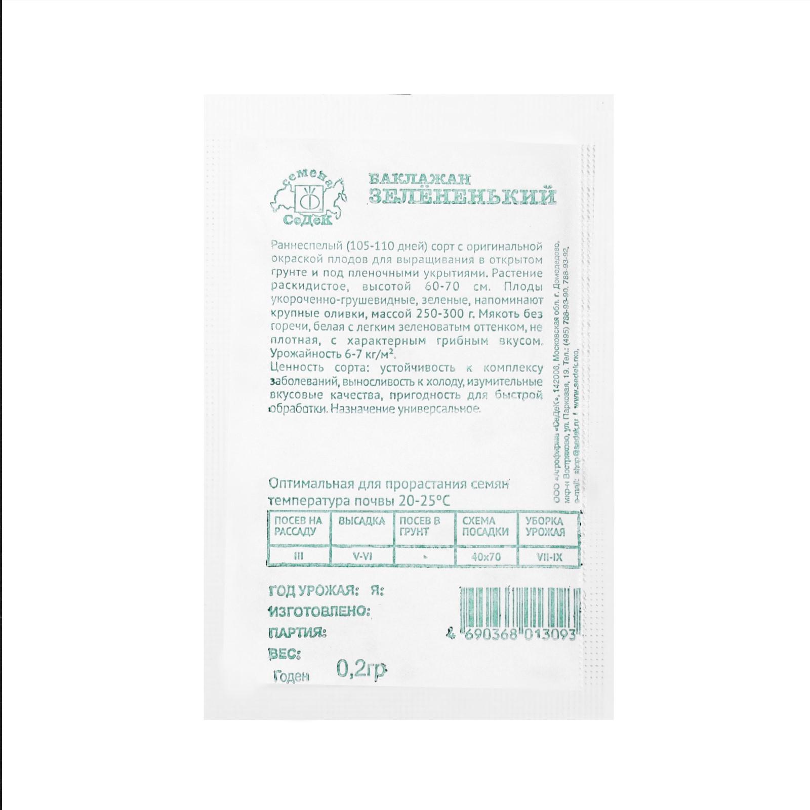 Семена Баклажан Зелёненький, б/п, 0,2 г