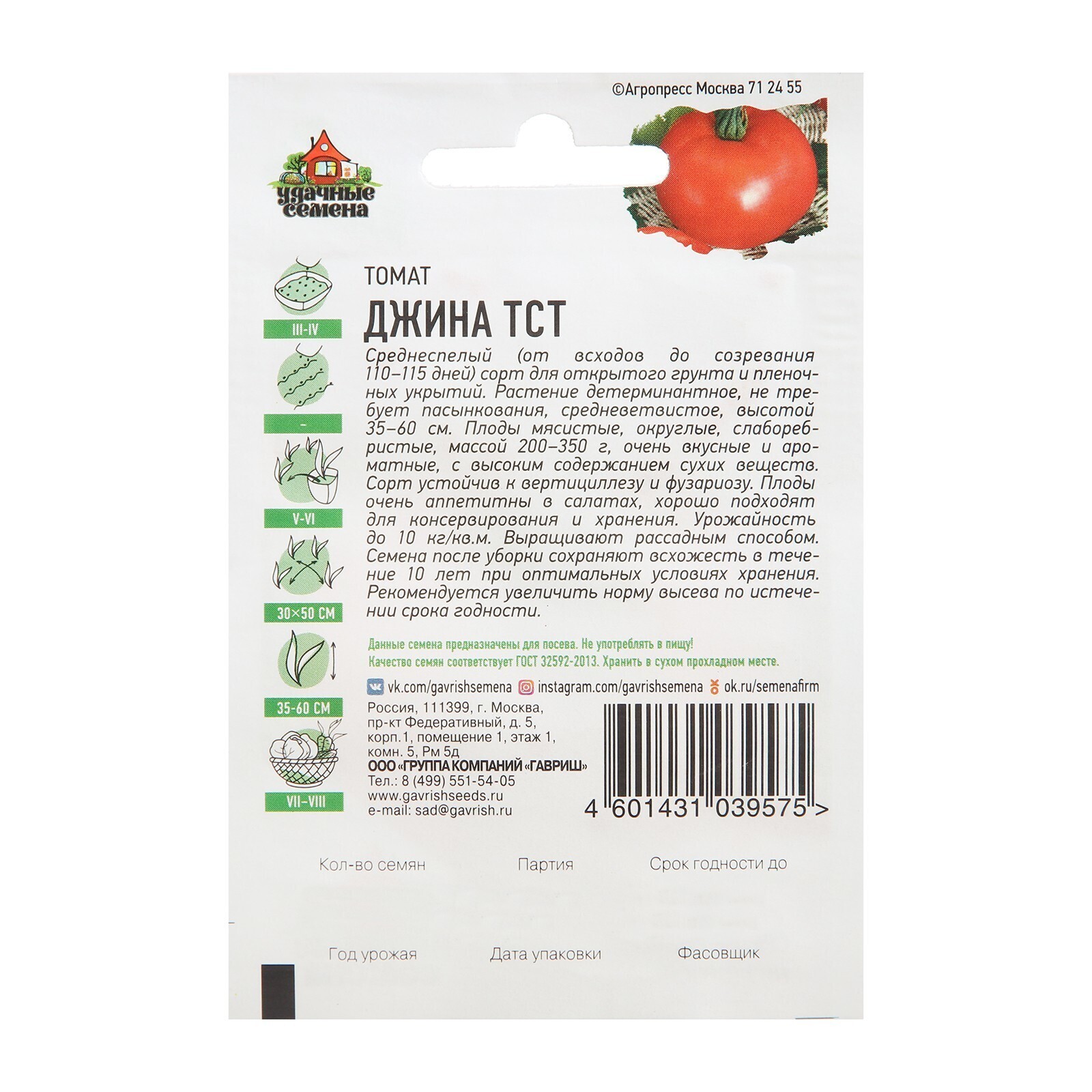 Семена Томат "Джина ТСТ", среднеспелый, 0,1 г серия ХИТ х3