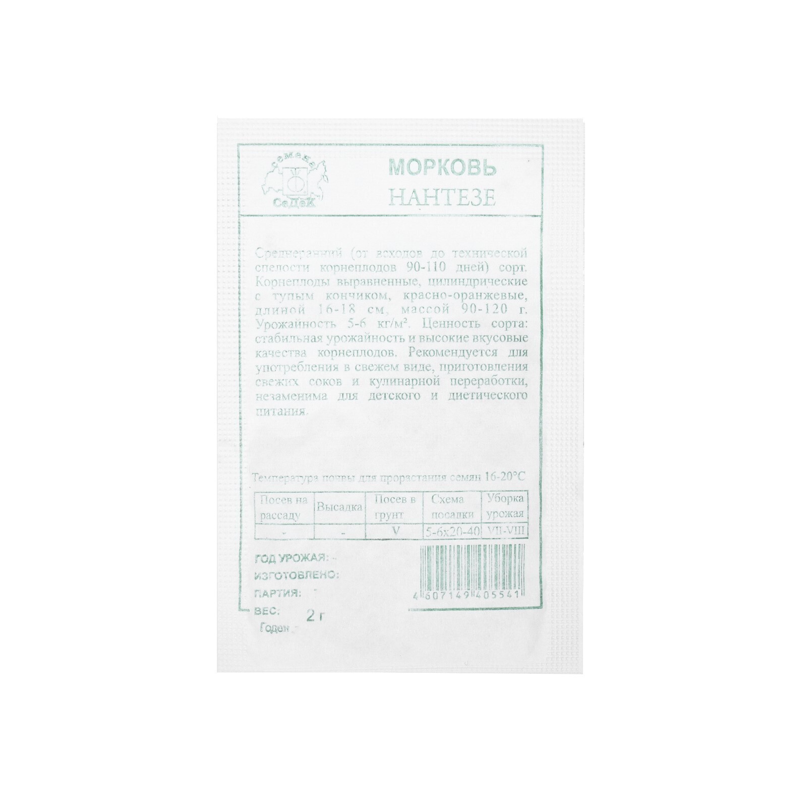 Семена морковь Нантезе, б/п, 2 г