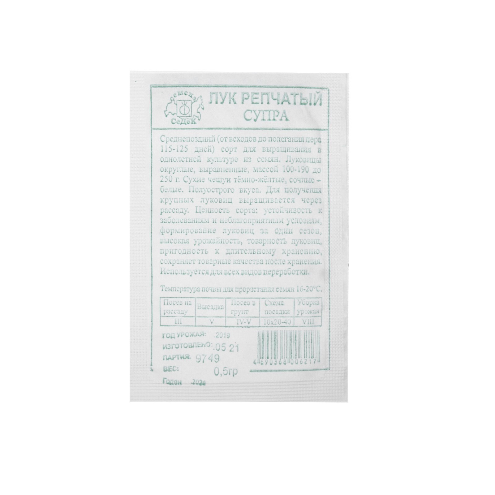 Позднеспелый (от всходов до полегания пера 140-150 дней) сорт для выращивания в однолетней культуре из семян. Луковицы шаровидные, плотные, крупные, массой 150-250 до 350 г. Сухие чешуи золотисто-коричневые, сочные – белые. Острого вкуса. Для получения крупных луковиц выращивается через рассаду.