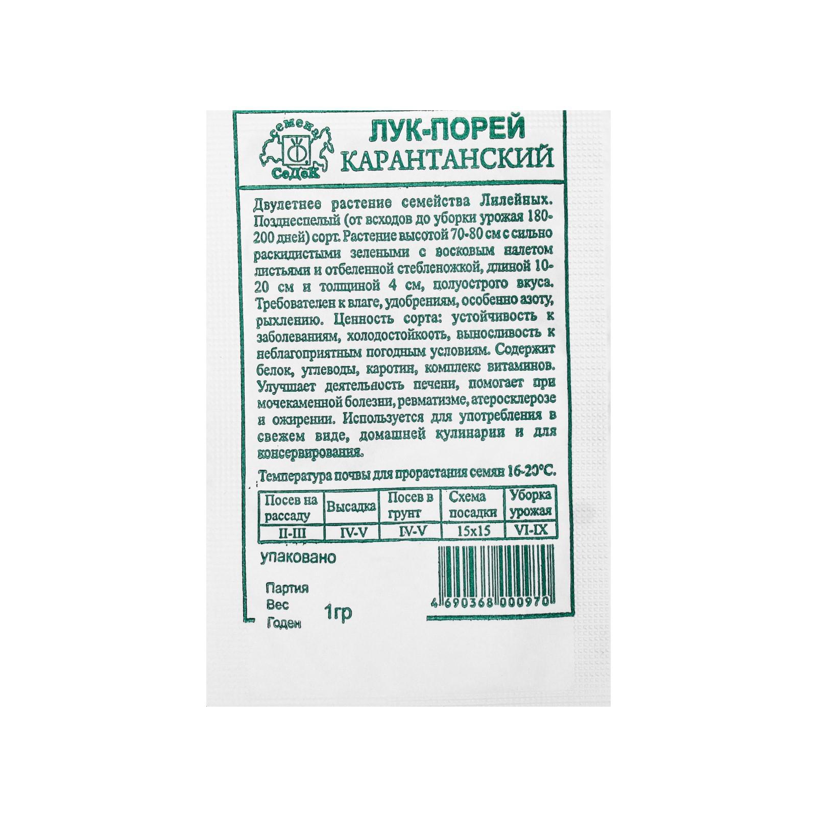 Семена лук Карантанский Порей, б/п, 1 г