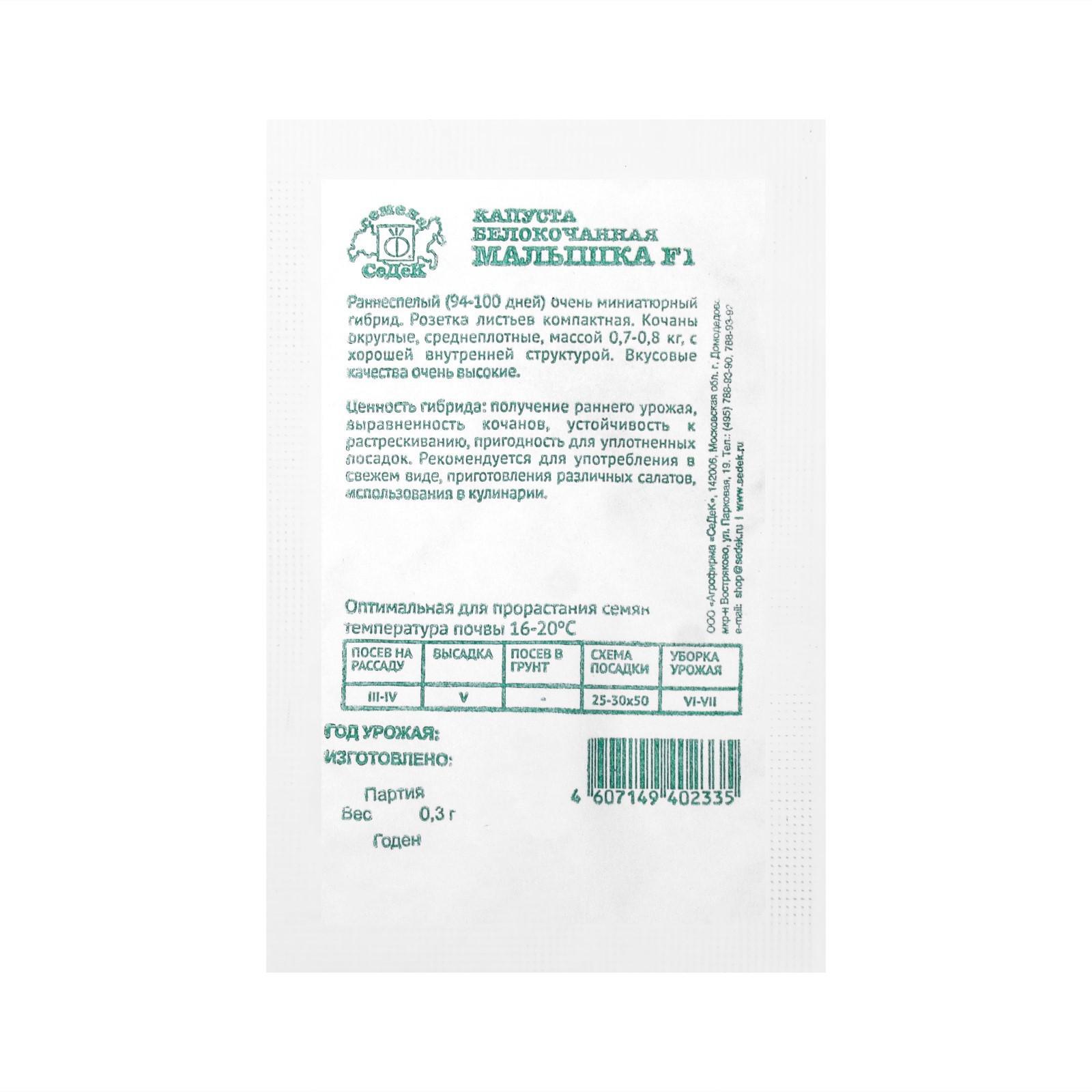 Семена капуста Малышка F1 белокачанная, б/п, 0,3 г