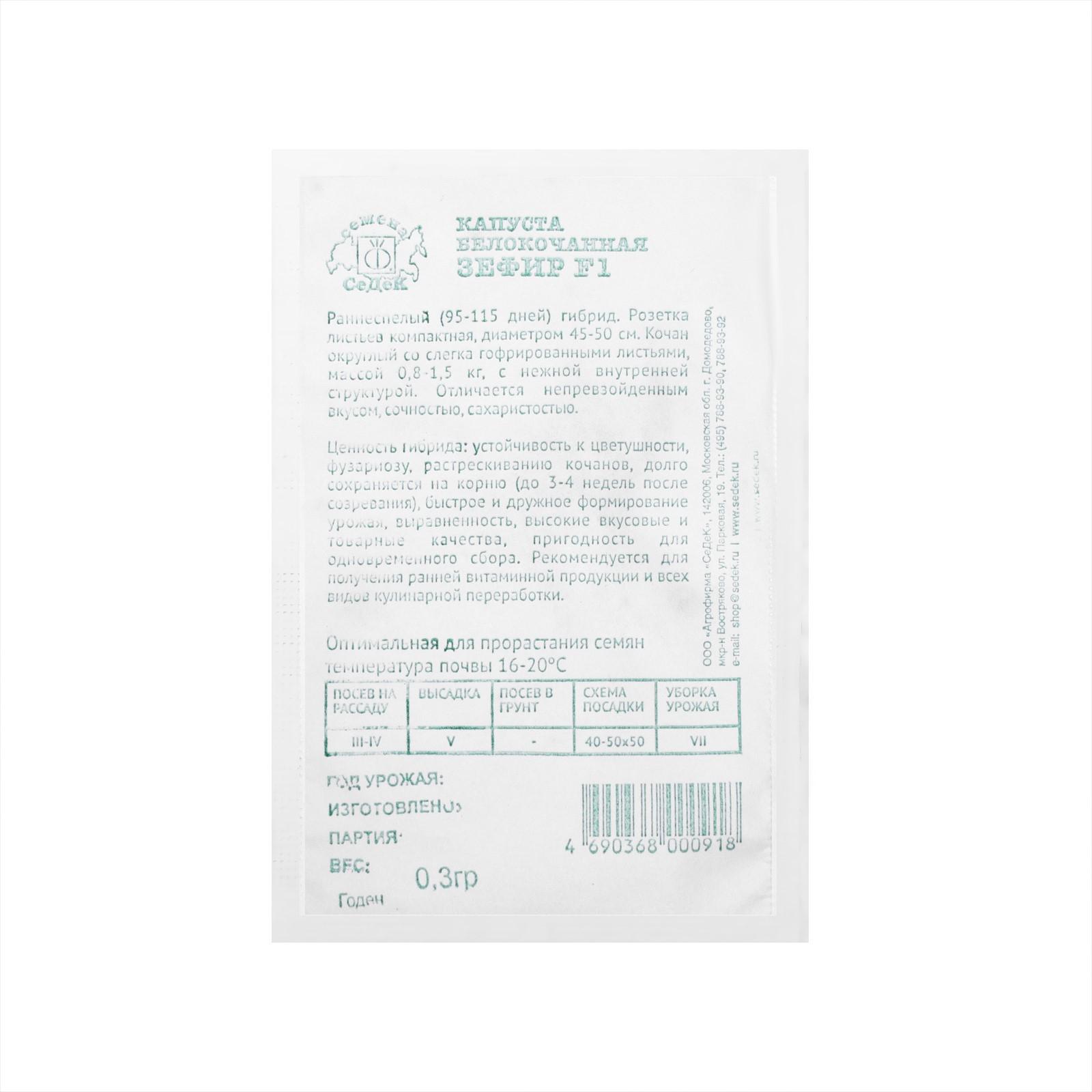 Семена капуста Зефир F1 белокачанная, б/п, 0,3 г