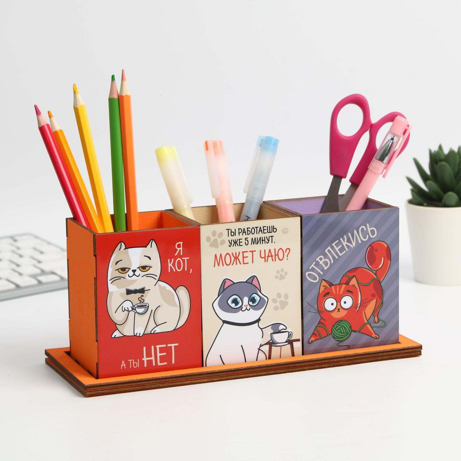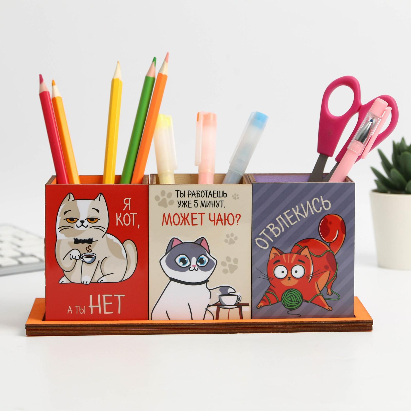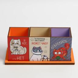 Карандашница тройная на подставке «Коты», 6,5 х 6,5 х 9,3 см