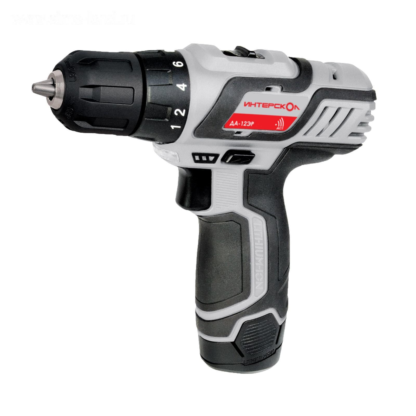 Дрель-шуруповерт ИНТЕРСКОЛ ДА-12ЭР, 12 В, 2х2 Ач, Li-Ion, 1400 об/мин, 28 Нм, БЗП 10 мм