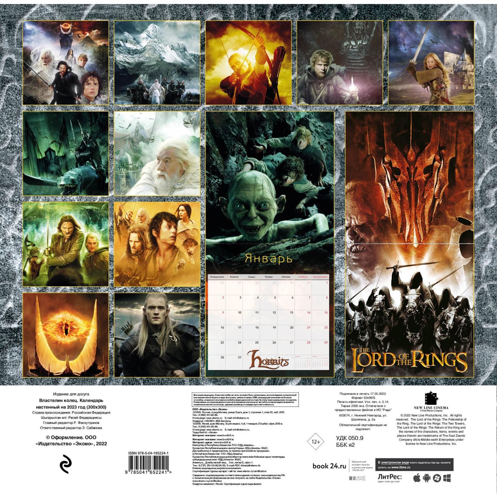Официальные продукты по легендарной вселенной «Властелин колец» теперь и в книжных магазинах! Календарь с 12 любимыми кадрами из трилогии! Отличное полиграфическое исполнение и удобная сетка, в которой отмечены все государственные праздники — все это будет дарить вам такие незабываемые эмоции каждый день, что вы не заметите, как пролетит целый год! Отличный подарок себе и друзьям!